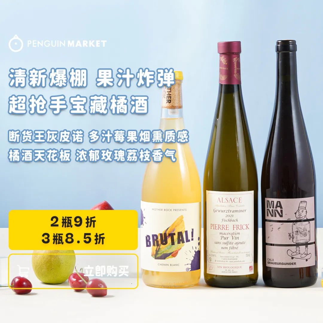 这几年葡萄酒世界最红出圈的一种风格,绝对是橘酒(Orange Wine,也叫做橙酒)。不管是人均3000+的世界排名第一餐厅Noma,还是上海唯二的三星餐厅Ultra Violet,再到国内风靡的各家小酒馆杯卖酒单,都会专门为它留出位置。为啥这么火?除了确实长得漂亮又显眼之外,这的确是近年来少有的,让小白喝完都能感觉眼前一亮的风格。你可以理解为它是用红葡萄酒的酿造方式,来酿造白葡萄品种。因为经过了短暂浸泡葡萄皮,所以?:香气更复杂?因为浸皮萃取了芳香物质,橘酒通常都会有一喝就懂的爆炸花果香。口感更饱满?橘酒和白葡萄酒的差别,相当于果茶和果汁,橘酒浸皮带来的少量单宁,喝起来恰如一杯冰茶的微微收敛感。注意哦,不是用橘子或橙子酿出来的酒,而是因为酒液呈现橘黄色,所以名为橘酒。不过红归红,老实说,这两年橘酒越来越红,的确是很难选的。因为需求水涨船高,线下酒馆动辄400+元一瓶,但也因为很多国家对橘酒还没有法律分级,其实很容易踩雷(浸皮过程中其实很容易出现各种杂菌、过度氧化的问题)。我们算是从2017年开始安利橘酒,这几年也积累下来一点方法论,今天先来给大家安利3支尝尝鲜!新旧世界都有,风格完全不同。新鲜爆汁风:南非大地之石白诗南Brutal炸裂果香,浓郁复合堪比高级柑橘调香水,推文价238元。温柔复杂风:“木得感情的酒精容器”灰皮诺,一瓶难求的德国新锐酿酒师,俏皮莓果汁风味下藏着叛逆的烟熏矿物气息,推文价318元。天花板级:Pierre Frick琼瑶浆,阿尔萨斯生物动力先驱,大师级橘酒,感受玫瑰荔枝还小席卷,推文价478元。橘酒本身小酒馆都不够抢,我们也是磨破嘴皮才能争取到库存,三支单价酒全是全网最低!任选两支还有9折,三支ALL IN八五折更低,直接省下200+元!!!也就是小酒馆随便开一瓶的价格吧……Mother Rock Brutal Chenin Blanc