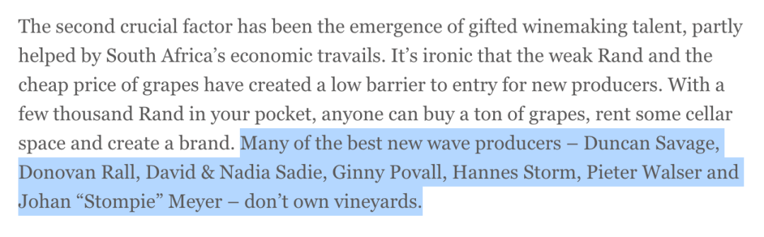 这支酒是南非当红酿酒师Johan Meyer新作。刚进入内地市场,就被我们拿来卖了。来看看酒圈大佬对他的评价:知名权威酒评家MW Tim Atkin称他为南非最好的一批新浪潮酿酒师。Tim Atkin还在为Johan扼腕,由于入行门槛太低,劣币驱逐良币导致Johan Meyer到现在都没法拥有自己的葡萄园。Johan本人:在建了,在建了。而且哦,他还是神秘酿酒师组织Brutal的一名成员(Brutal翻译过来有??的意思,BTW这支酒也是新世界第一支Brutal!)。浅介绍下这个神秘组织,它好比葡萄酒世界的酷孩子联盟。像大学里的兄弟/姐妹会一样,入会是有门槛的。首先酿酒必须符合“零零”原则(不允许添加任何硫、酵母,也不允许给酒液做任何澄清),风格还要足够具有试验性(有鲜明的个人风格),满足以上两点,再经前辈引荐才能加入并使用“Brutal”标签(而且不是每支都能用)。打上“Brutal”标签的酒标,意味着这支酒个性非常鲜明,而且是经过圈层认可的,品质基本都很稳。相比起同价位的自然酒,这支酒的葡萄品质就很出色:来自南非Swartland,典型的地中海气候,葡萄成熟度好,而且还都是来自单一园,藤龄接近40年,风味还要更集中、浓郁。另外一个优点,尽管浸皮时间长达28天(常规橘酒一般3-14天),但是喝起来毫无氧化感(使用了一些二氧化碳来防氧化),很见水平!浓烈明亮的金桔皮香,集中紧实的西柚酸度,愉悦回甘的脐橙甜感,仿佛一支美妙的复合柑橘调香水,在口中表演三重奏。这家酒庄,其实去年就想要推荐了,但还没来得及写文章就已经悄悄走完