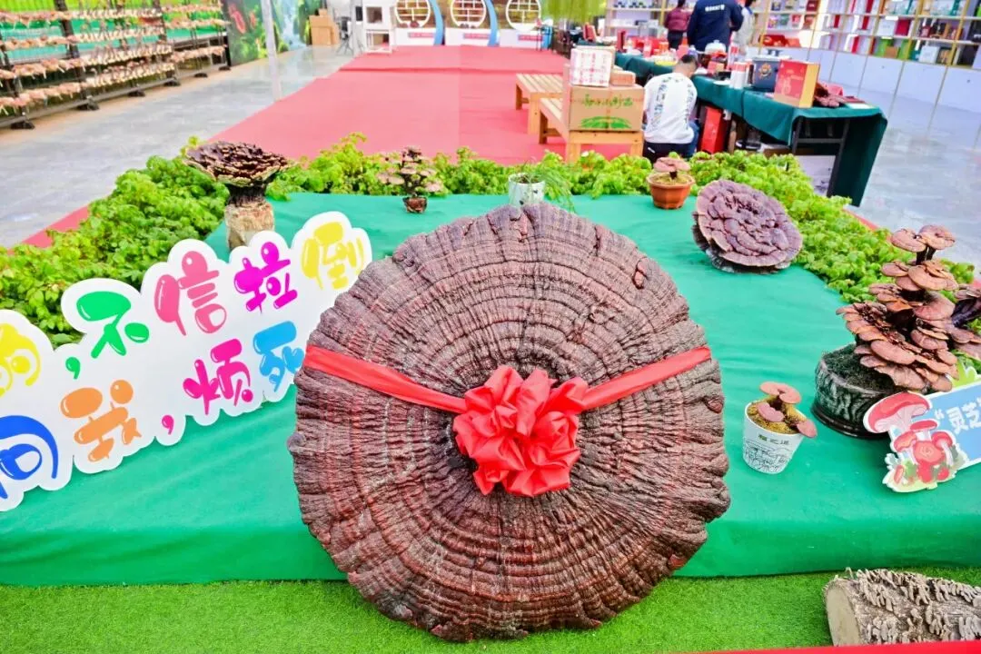 现代农业的硬核科技与自然的万千姿态在此碰撞。直径1.2米的“灵芝王”堪称“镇馆之宝”——深褐菌盖系着鲜红蝴蝶结,在绿台映衬下格外夺目。福芝道(吉林)生物科技有限公司工作人员苏壮表示: