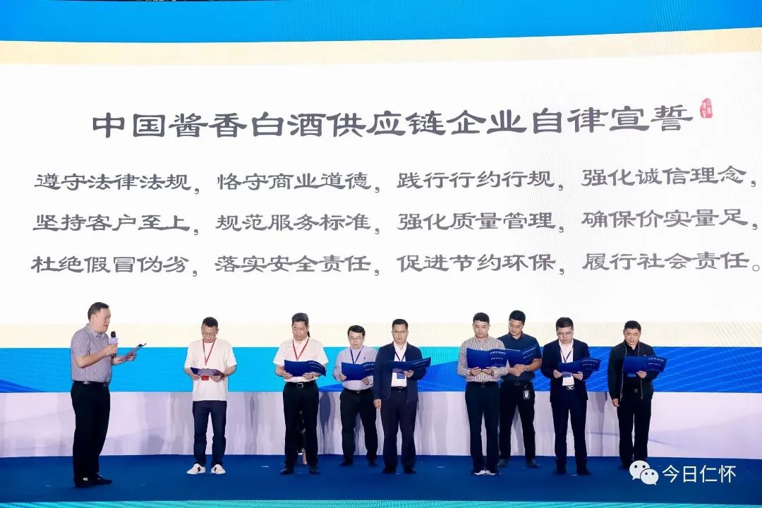 仁怀市委常委、仁怀经开区(园区)党工委书记刘进,仁怀经开区(园区)管委会副主任吕黔莉,中国包装联合会常务副会长、秘书长王跃中,中国包装联合会副会长、执行秘书长韩雪山,中国包装联合会设计专业委员会秘书长郭振梅,中国包装联合会副秘书长胡正阳,贵州省包装联合会会长程溯,仁怀酒业协会常务副会长、秘书长刘帮涛等参加会议。刘帮涛在致辞中说,仁怀产区的酱香美酒,美在酿造的时光和工艺,美在包装的创意和呈现,美在传递的陪伴和旅途。借助中国酱香白酒供应链高峰会议平台,为酱香白酒企业和供应链企业搭建沟通合作的桥梁,为仁怀酱香白酒产业带来新的机遇、注入新的能量,将助推中国酱香白酒核心产区高质量发展。中国包装有限责任公司总经理堵俊海在致辞中说,希望通过本次“高峰会议”,进一步增强酱酒产业建设及行业服务地方经济发展的能力,推动仁怀市政府、酱香白酒供应链产业经济与中国包装联合会、中国包装公司协力打造信息互通、能力互补、资源共享、价值共创的“中国酱香白酒核心产区”产业生态链。通过品牌价值提升实现“仁怀酱酒”提质增效,赋予它更多的文化内涵,让“仁怀酱酒”供应链产业由以往“向外看”转变为“向黔看”,逐步成为传递中国特色大国文化的价值理念。中国包装联合会发布《2022年度包装行业运行情况报告》。报告从2022年度包装行业发展基本情况,包装行业营业收入、利润情况,包装行业运行情况,包装细分行业情况,全国包装行业进出口情况分析五个板块进行阐述。会上,柏星龙创意包装股份有限公司营销总监李浩、贤俊龙彩印常务副总经理任明、中国物流市场总监胡显卓分别围绕设计、包装、物流做主旨演讲。酒企代表、包装联合会、设计企业代表、包装企业代表、物流企业代表举行圆桌会议。宣誓内容为:遵守法律法规,恪守商业道德,践行行约行规,强化诚信理念;坚持客户至上,规范服务标准,强化质量管理,确保价实量足;杜绝假冒伪劣,落实安全责任,促进节约环保,履行社会责任。