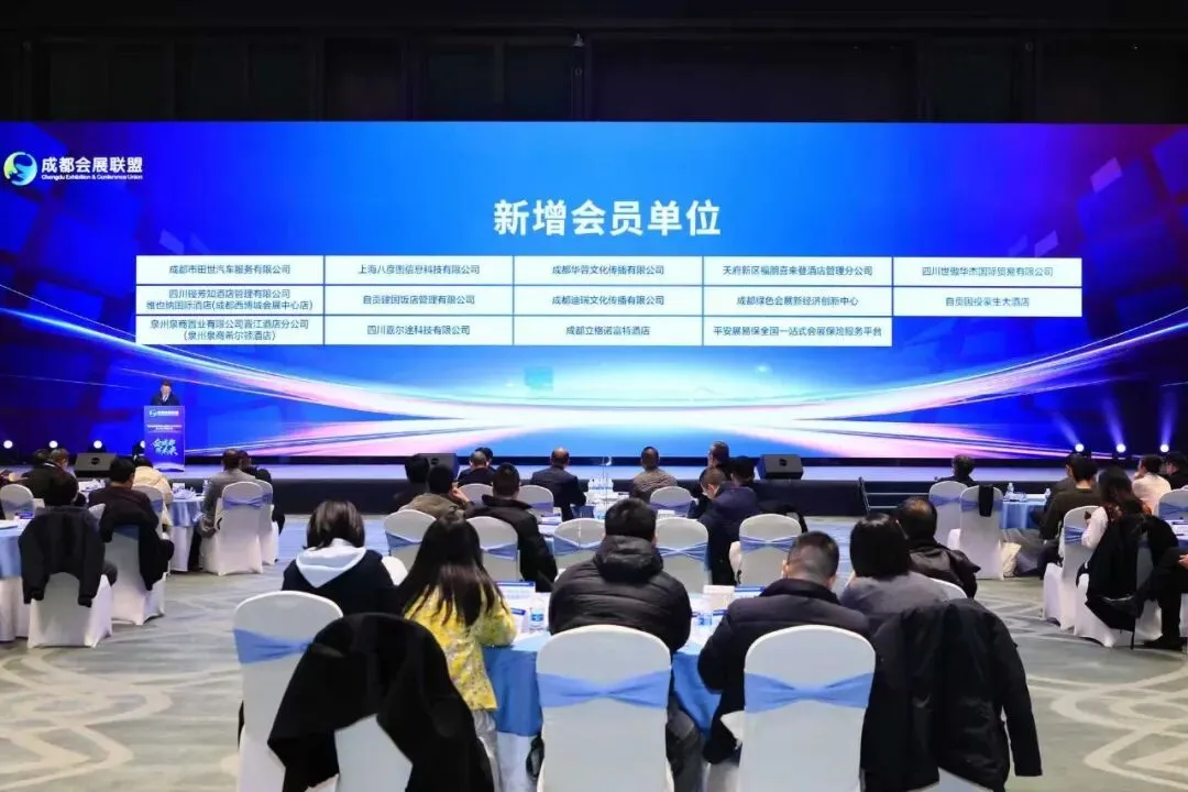 新增会员单位:成都市田世汽车服务有限公司、上海八彦图信息科技有限公司、成都华蓉文化传播有限公司、天府新区福朋喜来登酒店管理分公司、四川世傲华杰国际贸易有限公司、维也纳国际酒店(成都西博城会展中心店)、自贡建国饭店管理有限公司、成都迪瑞文化传播有限公司、成都绿色会展新经济创新中心、自贡国投豪生大酒店、泉州泉商希尔顿酒店、四川嘉尔途科技有限公司、成都立格诺富特酒店、平安展易保全国一站式会展保险服务平台