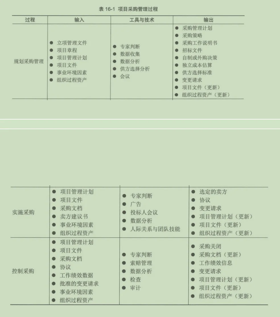 项目采购管理(3) | 1、规划采购管理 | 2、实施采购 | 3、控制采购 |