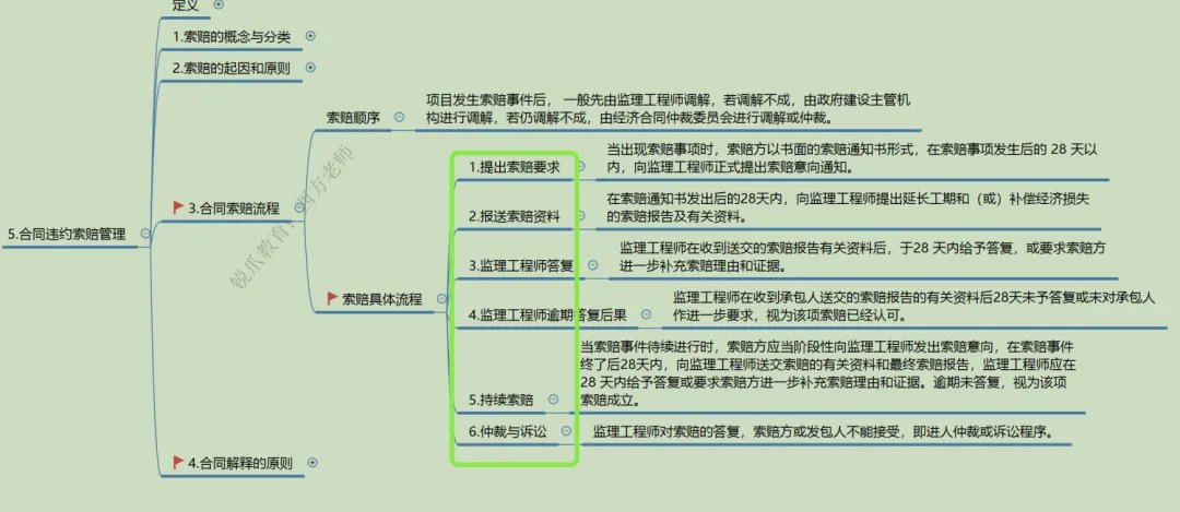 合同管理过程:签订、履行、变更、档案、索赔管理。