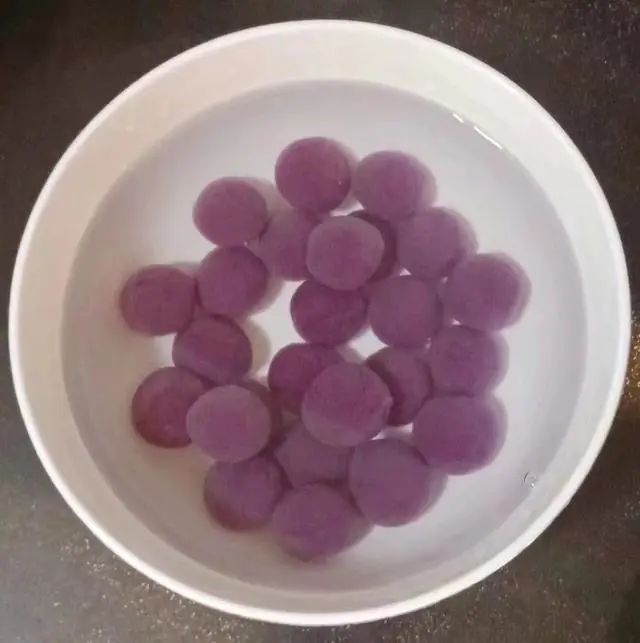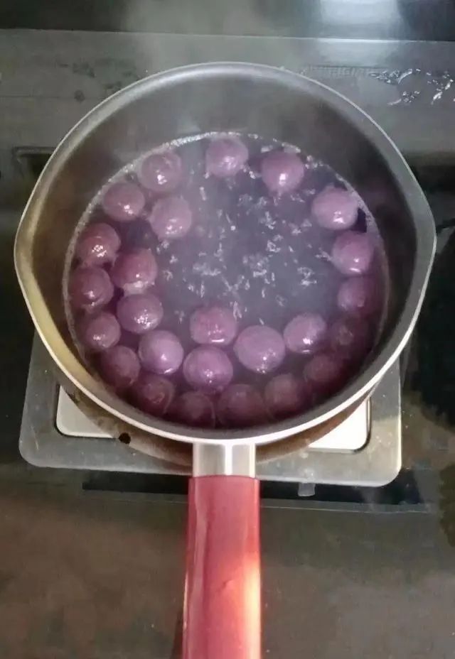 5.起锅烧水,水开下芋圆,煮至芋圆全部浮起关火