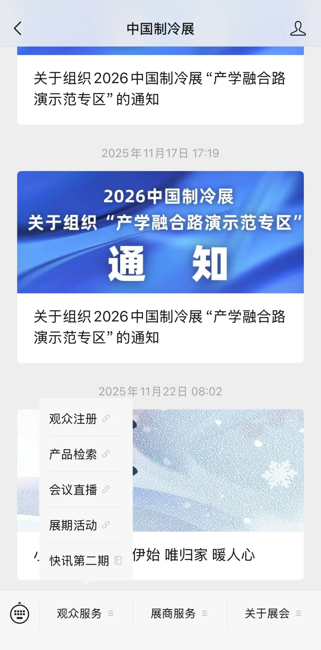 关注[中国制冷展]公众号,在菜单栏中点击观众