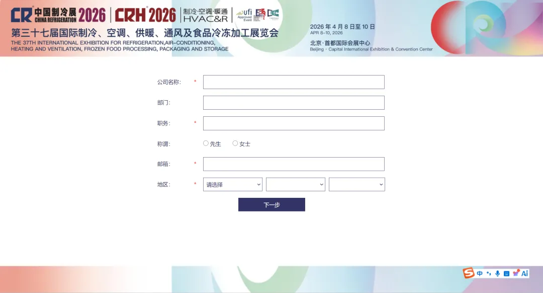 打开[中国制冷展】官网点击观众入口跳转注册页面。