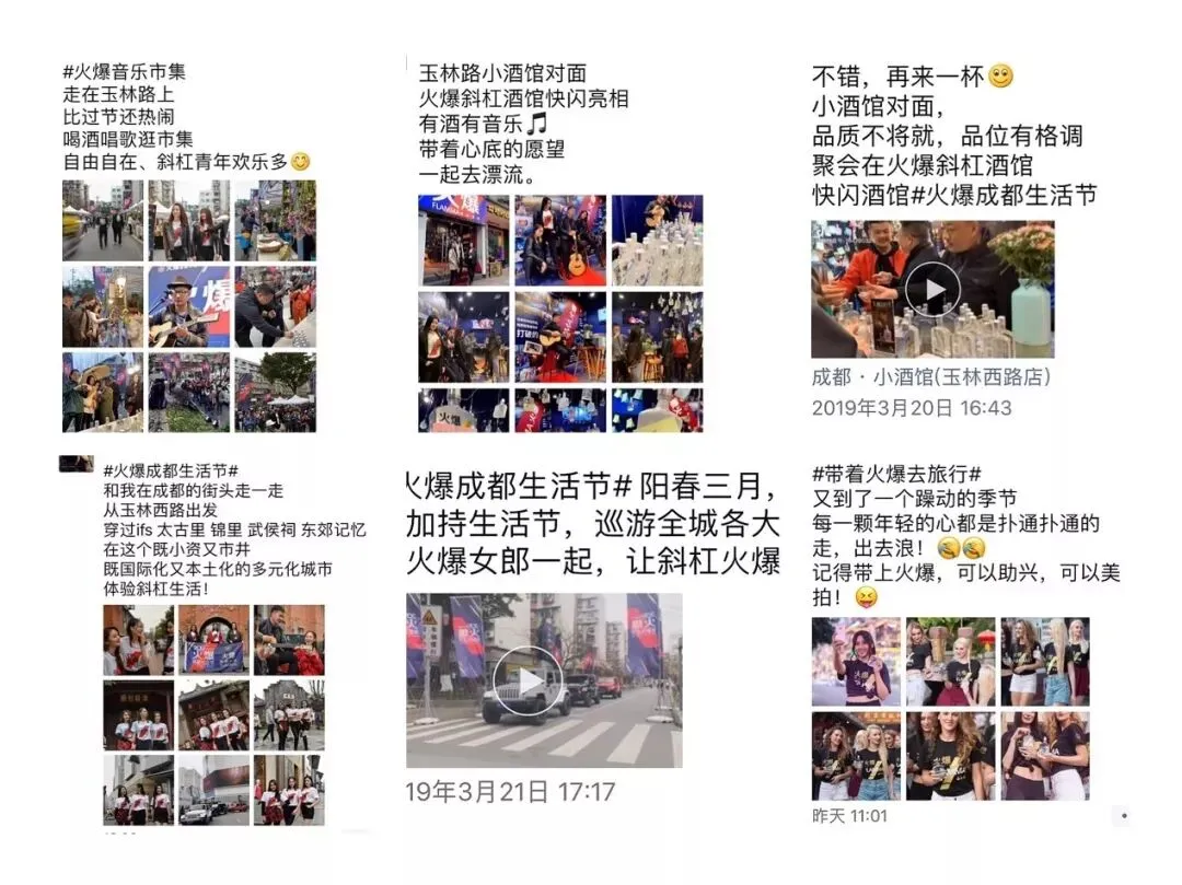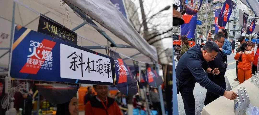 而2019年春糖期间,火爆小酒一改以往风格,在既小资又市井、即国际化又本土化的成都,在每天流量上万的地标——玉林西路,举办了白酒业首场城市生活节,开启了为斜杠青年代言的盛典。