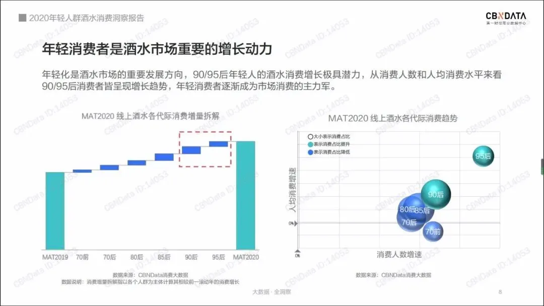 到2020年,《年轻人酒水消费洞察报告》显示,90后人群中10%的人有每日饮酒的习惯。而在线下场景,90后对餐饮、酒吧这两个酒水最大的消费场景,实现了60%的贡献率。