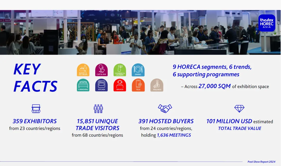 THAIFEX-HOREC Asia是从业内享有盛誉的亚洲世界食品展(THAIFEX-Anuga Asia)细分发展出的专业性酒店行业展会,专注于酒店用品设施领域,更加清晰地定位目标市场和客户群体。