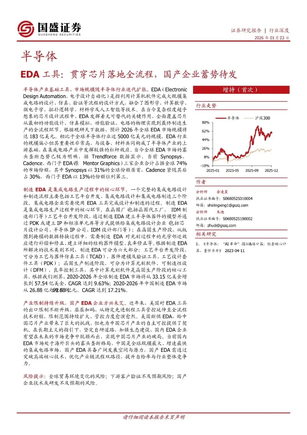 暗号:半导体行业深度:EDA工具,贯穿芯片落地全流程,国产企业蓄势待发-260123-国盛证券-24页