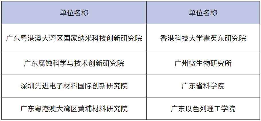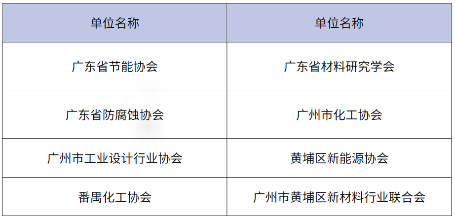 广东粤港澳大湾区黄埔材料研究院、广州市黄埔区新材料行业联合会、国高材高分子材料产业创新中心有限公司、广东省中小企业发展促进会、广东省材料研究学会、广东省节能协会、广州市化工协会、广州市中小企业专精特新发展促进会、广州市产业园区商会、广州市新材料产业发展促进会、黄埔区新能源协会、番禺化工协会、广东省科学院、广东粤港澳大湾区国家纳米科技创新研究院、广东腐蚀科学与技术创新研究院、广东以色列理工学院、西安电子科技大学广州研究院、深圳先进电子材料国际创新研究院、中以集知(广州)科技有限公司、广州博士信息技术研究院有限公司、广州火炬高新技术创业服务中心、广州知识城国际领军人才集聚区、圣力科技园、光正科技园、创造者园区、中南高科、德美产业园、奥特朗科技园、智造谷创新园、广德(英德)产业园等。