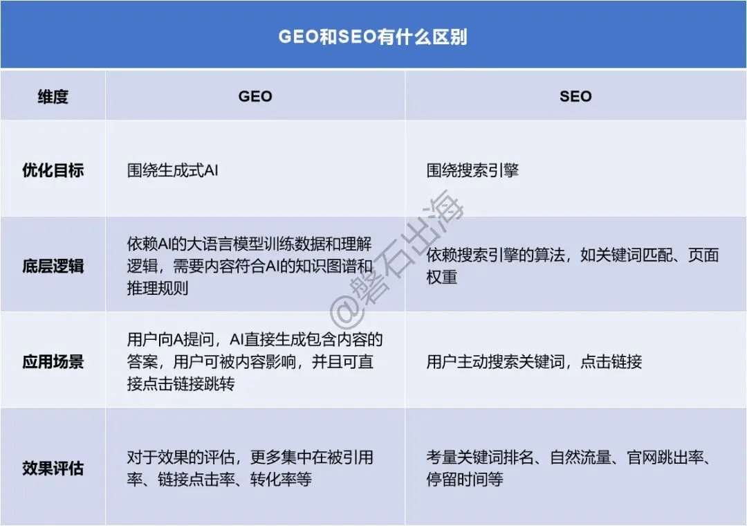 很多工厂主误以为GEO是“新SEO”,实则二者是互补升级关系,核心差异在于流量来源和推荐逻辑,尤其适配五金行业“采购批量大、需求精准、注重合规与品质”的特点,具体区别如下: