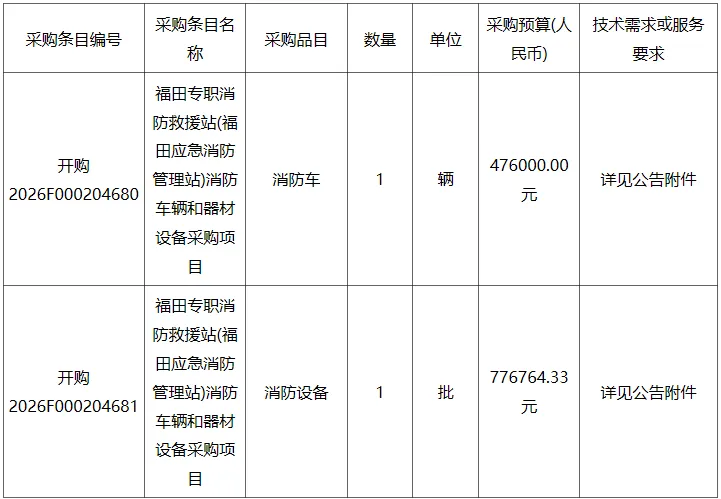 福田专职消防救援站(福田应急消防管理站)消防车辆和器材设备采购项目招标项目的潜在投标人应在江西省公共资源交易网获取招标文件,并于 2026年02月28日09点30分 (北京时间)前递交投标文件。