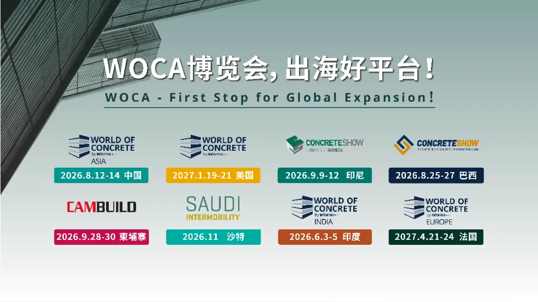WOC2026涵盖了混凝土行业的全产业链,为参展企业提供对接全球买家的一站式平台: