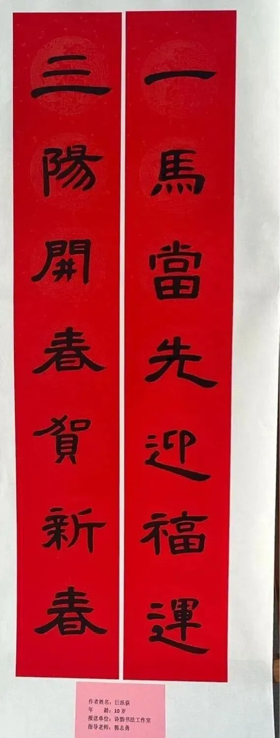 金蛇辞旧岁,骏马迎新春。丙午马年春节即将到来,为丰富节日期间少年儿童的文化生活,引导少年儿童弘扬传统文化,在笔墨丹青中感受新春的喜悦与生肖马的昂扬活力,营造节日氛围,现线上展览“欢天喜地过大年”第十三届“迎新春”少儿书画展书法部分。