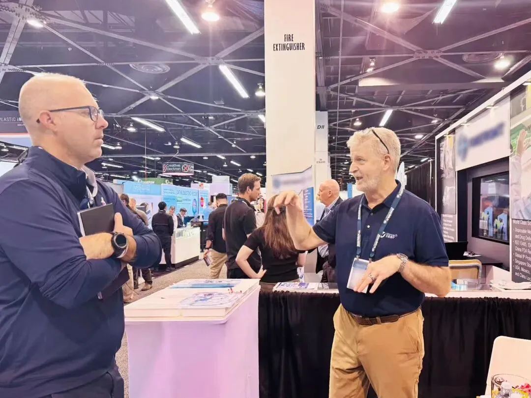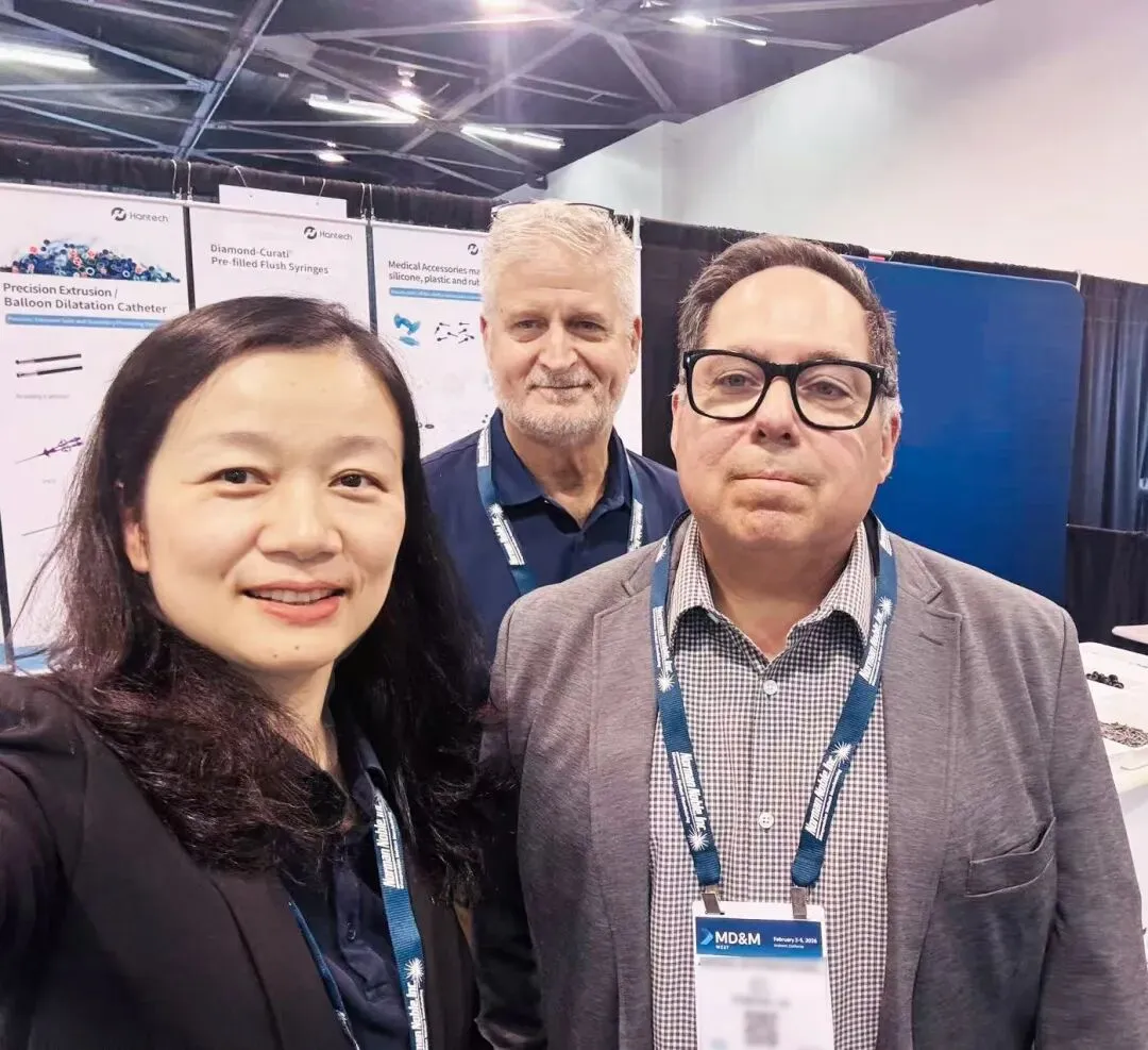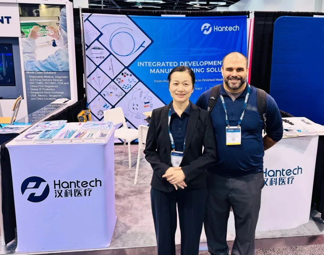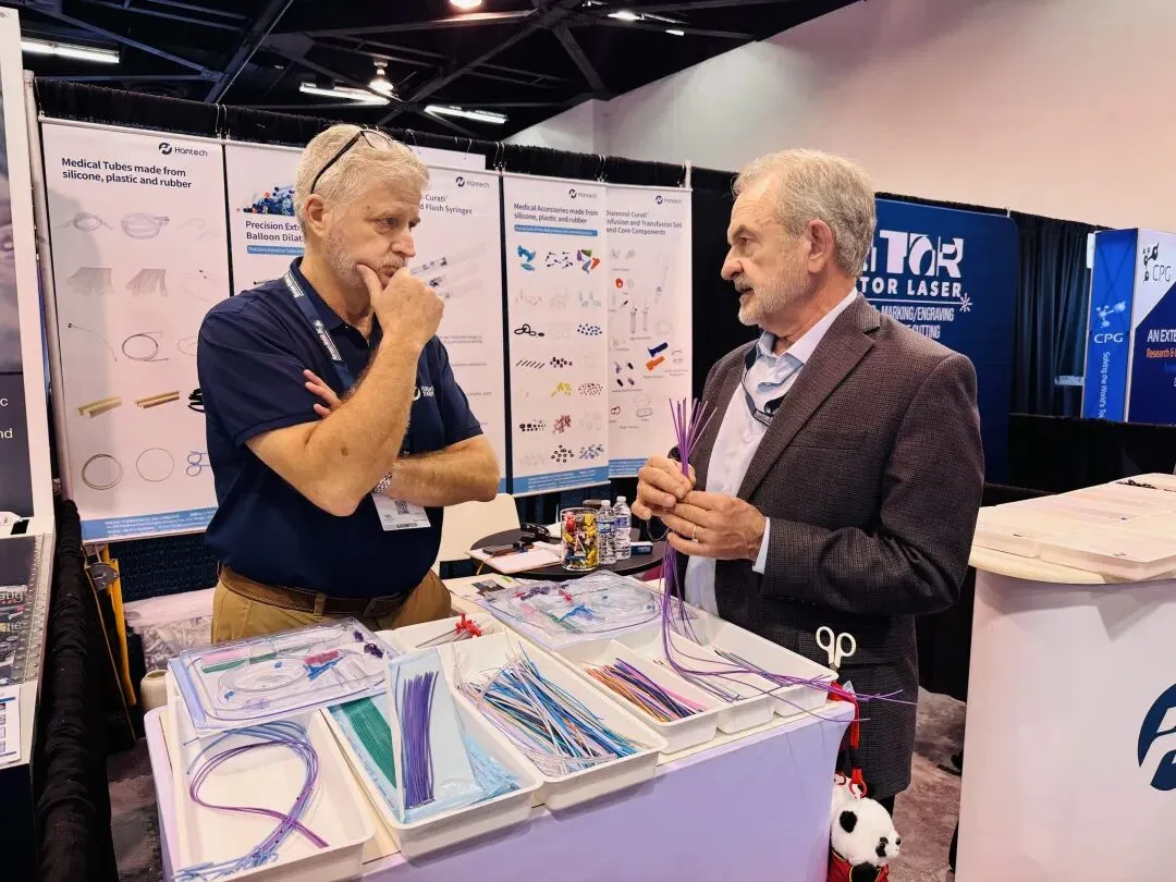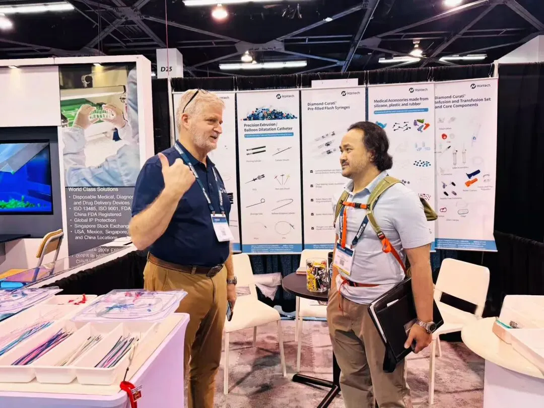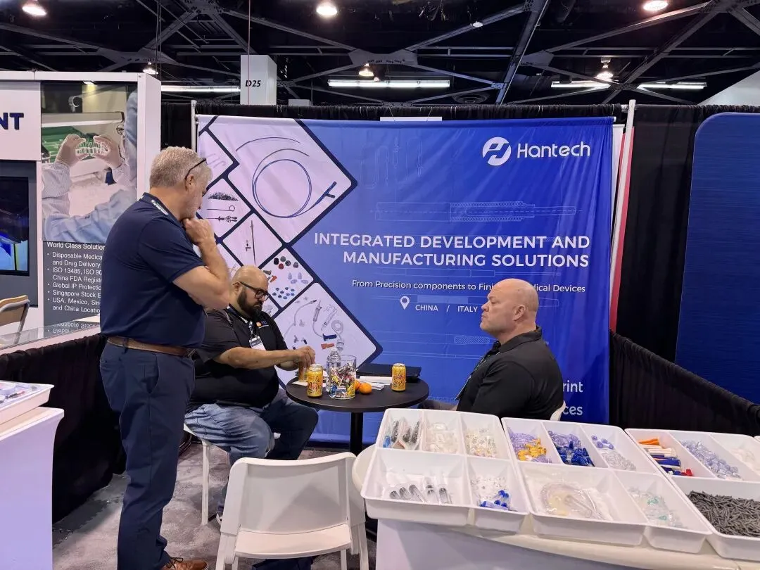 展会期间,汉科美国与客户进行了深入交流,就医疗器械产品的CDMO服务、质量管理体系、工艺能力与特点、跨国研发生产协同等内容展开了探讨。
