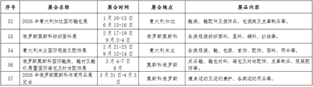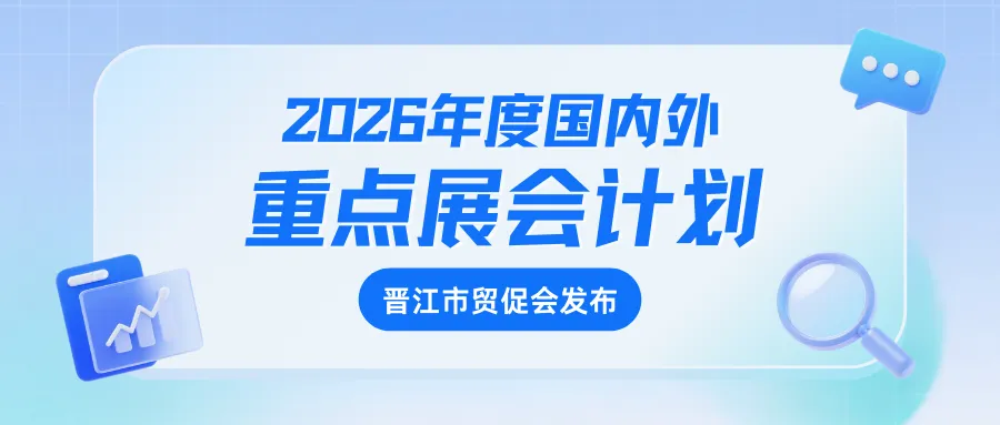为鼓励晋江市企业充分利用国内外展会平台开拓市场,推动出口市场、产品结构升级,出口效益提升,晋江市贸促会拟制定2026年度国内外重点展会计划项目,并参照相关政策条款对参展企业给予扶持。现将有关事项公示如下: