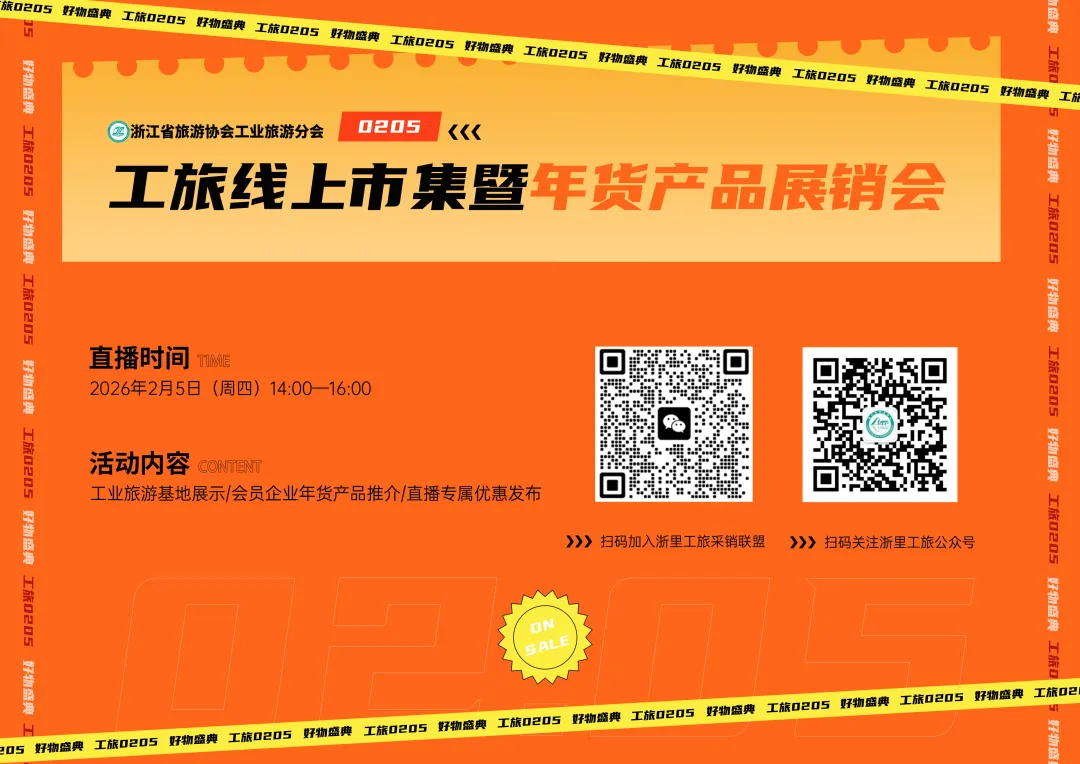 为集中展示浙江省工业旅游发展成果,深化会员企业交流合作,助力年末消费提振,2026年2月5日,由浙江省旅游协会工业旅游分会主办的“工旅线上市集暨年货产品展销会”以线上直播形式成功举办。本次活动通过“工业旅游推介+年货产品展销+线上互动引流”的创新模式,打造了一场内容丰富、形式新颖、成效显著的工旅融合盛会。