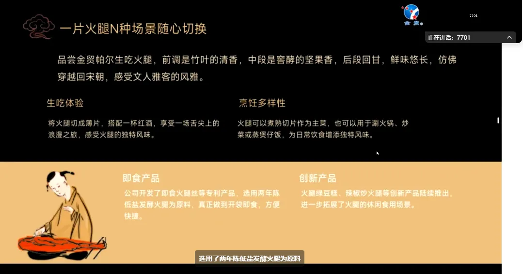 本次活动通过腾讯会议平台开展,直播时长2小时,共吸引近20家工业旅游分会会员企业参与展示,涵盖食品饮料、家电制造、中医药、文创文旅、智能制造、生活消费等多个领域。活动累计吸引百名行业同仁及消费者在线观看和互动,直播间交流氛围活跃。