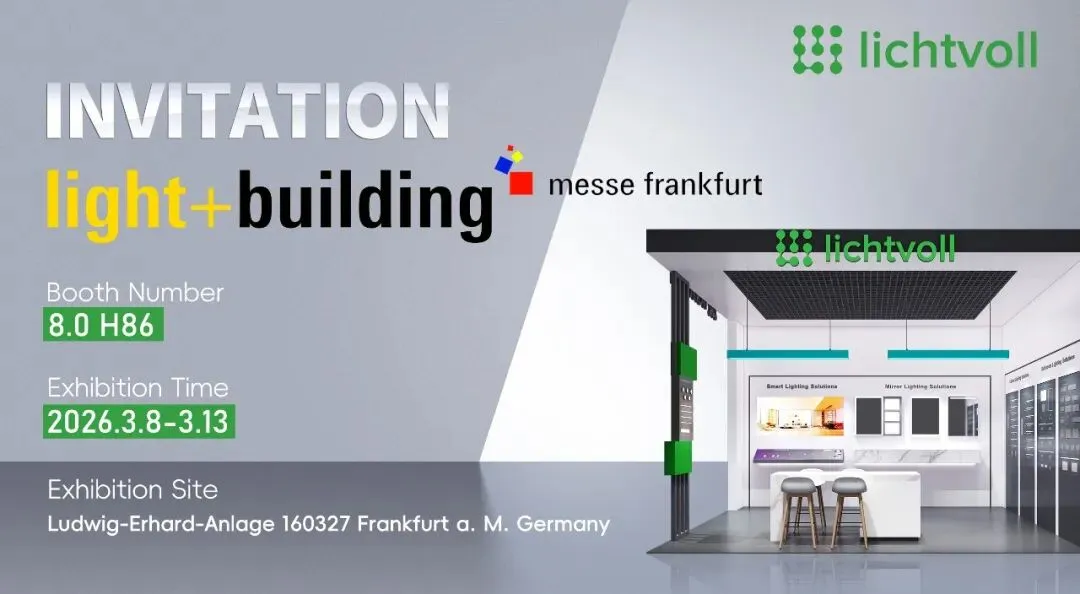 全球照明与建筑技术盛宴——Light + Building 2026,即将于3月8日在法兰克福点燃智慧之光。本届展会以“Be Electrified – Electrifying Places Illuminating Spaces”为主题,精准指向了建筑电气化与人性化照明的融合未来。在这场定义行业风向的盛会上,擎洲光电德国子品牌lichtvoll 将重磅登场(8.0馆,H86展位)。我们不仅展示产品,更将以一系列创新的电源电控及智能照明解决方案,与全球顶尖企业共探“好光”未来。
