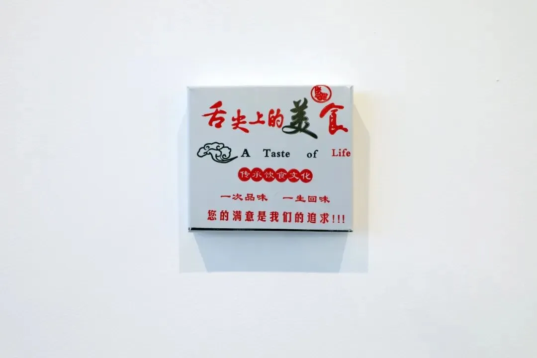 鲁梅古工作始于对环境细部的捕捉:工作室露天平台上持续旋转的风扇,成为她观察的起点——一种无声却恒定的运转机制,提示日常如何被系统节奏所调度。受到《24/7:晚期资本主义与睡眠的终结》一书的启发,她将“降低转速”视为对晚期资本主义持续动员逻辑的抵抗:并非情绪化的退隐,而是对效率、可用性与注意力分配的重新协商。这些研究最终形成作品《分离》。她对包装塑料袋、食物图像与消费语言的长期研究,亦在本地经验中获得新的触发。例如作品《生活的品味》延续其既有系列,先前的“Thank you”变换为“舌尖上的美食”印花。