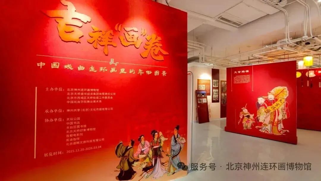 以下是2026年2月份全国范围内的连环画主题展览信息。展览信息以所在省 (自治区、直辖市)的拼音首字母排序。展览以百年戏曲连环画为核心载体,循着腊月祭灶到元宵灯会的年节时序脉络,将传统年俗与戏曲艺术巧妙编织成一幅生动鲜活的民俗长卷。展览精心设置 “新年序曲”“吉祥献瑞”“神骏开道”“灯火良宵” 四个特色单元,通过近百件珍贵展品,构建起兼具文化深度与观赏趣味的节日文化空间。展品中既有 《灶王爷》《灶王爷的故事》《灶王爷传奇》等聚焦年俗主题的连环画,诠释了小年祭灶的传统习俗与文化寓意;也有 《彩楼记》《小放牛》《小过年》《定军山》等经典戏曲剧目连环画,年节日常场景跃然纸上,让观众瞬间贴近传统年俗的烟火气。戏曲与连环画的跨界融合,为观众呈现出多元的艺术表达。为打破传统展览的观赏边界,展览还融入了互动体验。在体感互动大屏前,有的观众通过挥动手掌打开虚拟的中国戏曲连环画阅览室;有的在阅读一体机前驻足,体验戏曲数字平台;现场还设置了扫码线上猜灯谜环节,让观展过程更具参与感与趣味性,沉浸在传统艺术与年俗文化交融的氛围中。