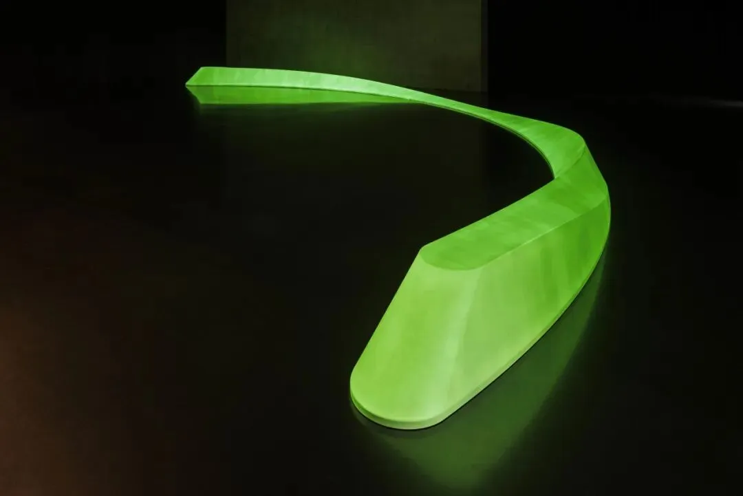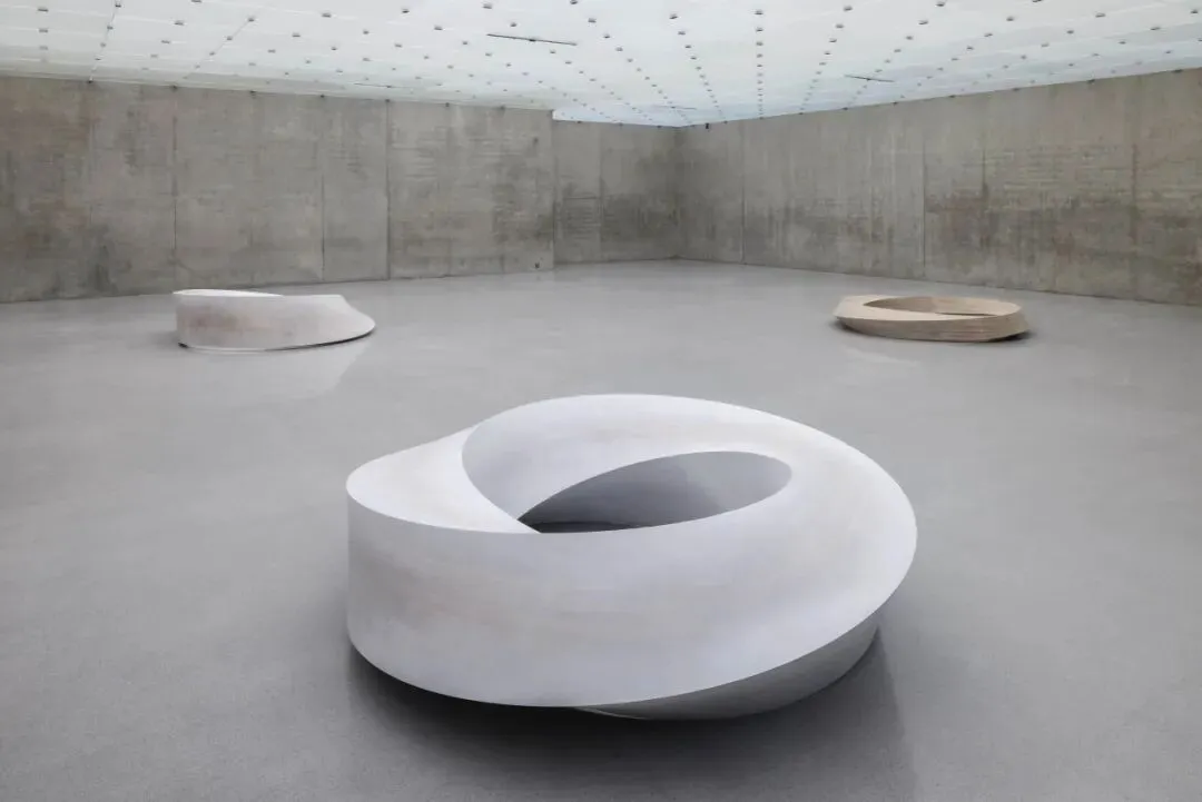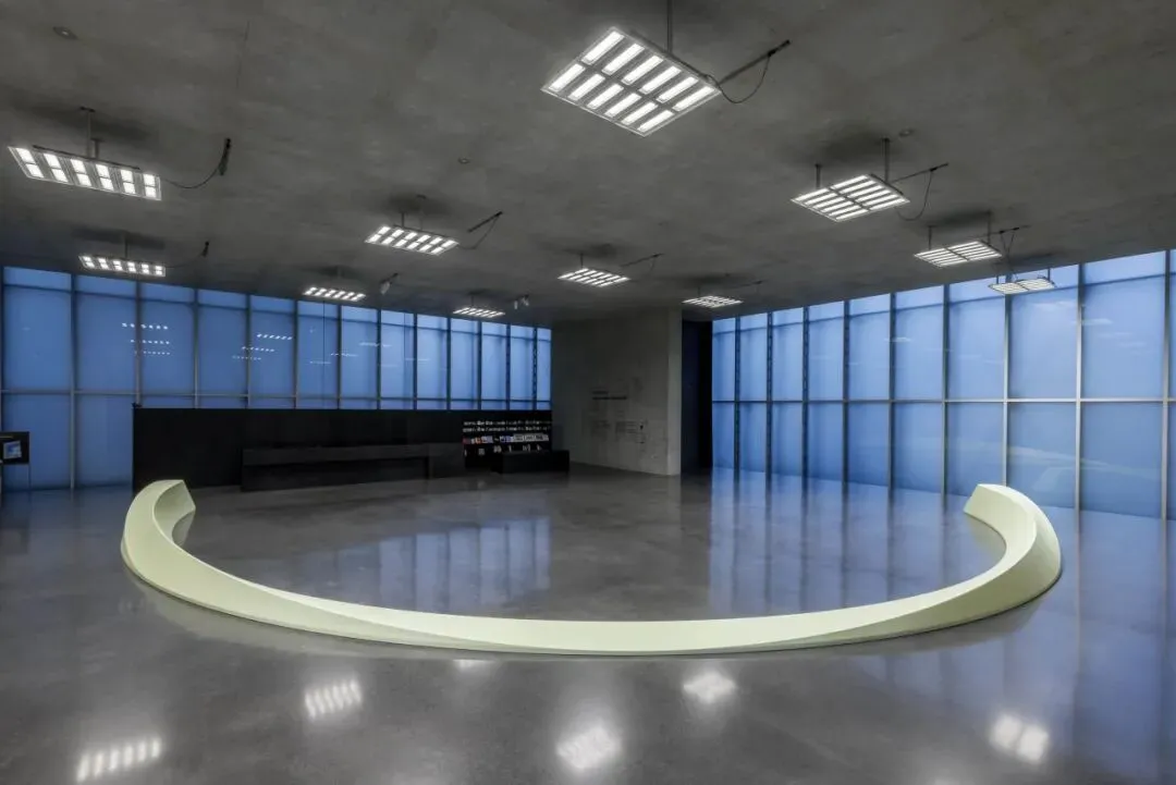 在布雷根茨美术馆的一层,具贞娥将滑板公园的一部分从原有语境剥离出来;作品的表面使用含磷材料,可在黑暗的环境中发光。流畅的弧线从作品延伸而出,重新划分了展区空间,与彼得·卒姆托(Peter Zumthor)设计的美术馆建筑相互映衬——一个让观者得以体验材料、光线与运动的空间由此诞生。此作与艺术家在 2024 年威尼斯双年展、2019 年米兰三年展及阿尔勒、利物浦、圣保罗、首尔等地展出的滑板公园作品一脉相承,将滑道曲线呈现为莫比乌斯环的形式。在本次展览中,这些作品也可被视为场域特定雕塑,它们被精密地构造,从而完美地融入美术馆的空间氛围之中。