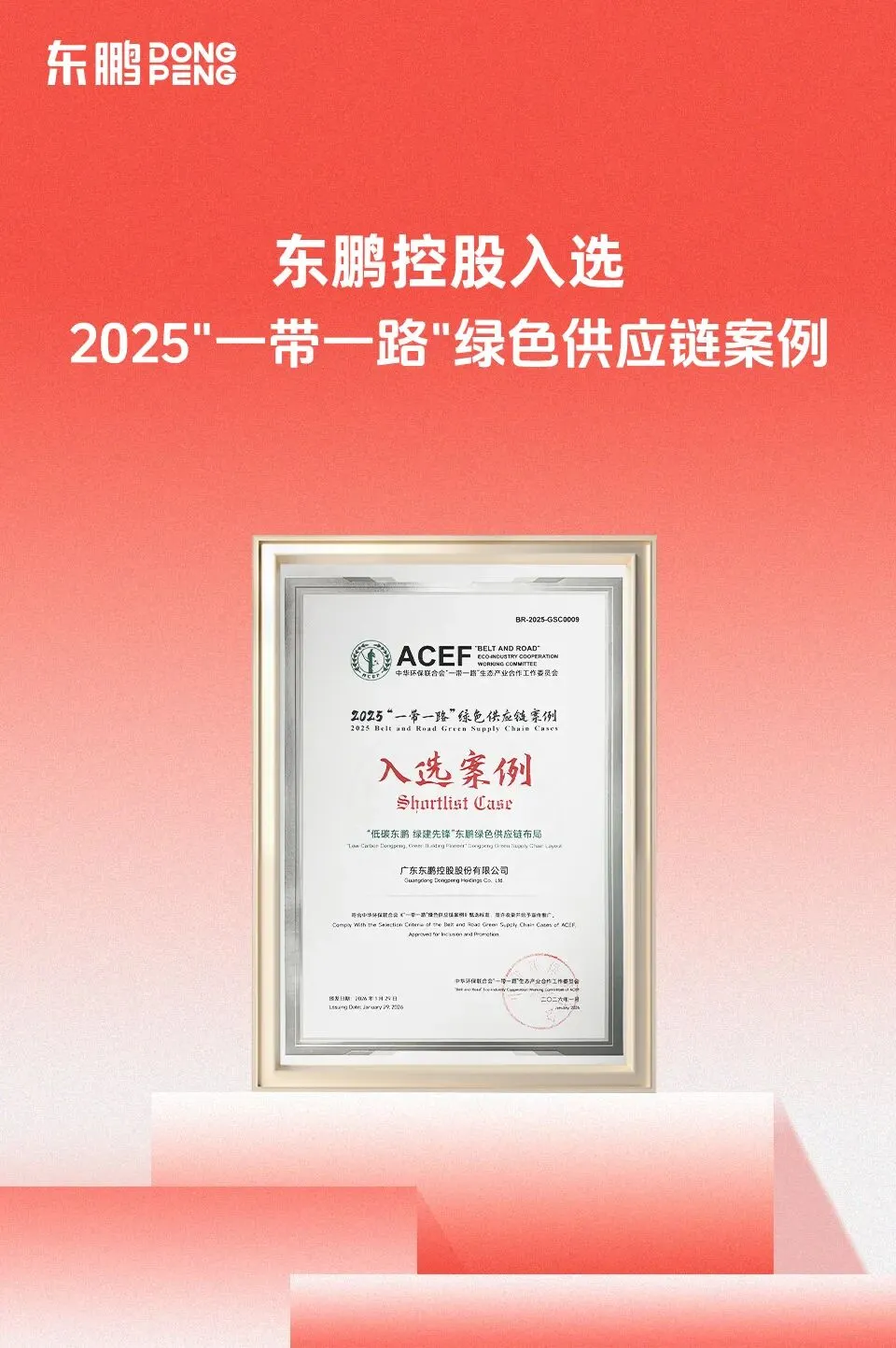 未来,东鹏将继续强化绿色创新与开放合作,积极参与“一带一路”绿色标准共建与低碳项目落地,推动中国绿色建材与低碳解决方案在全球价值链中发挥更大作用,助力构建互利共赢的绿色发展共同体。