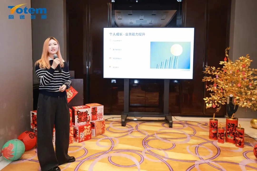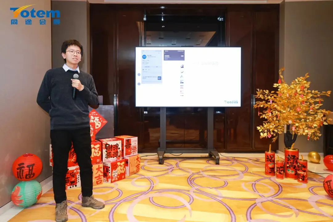 年会伊始,作为同途这个大家庭的领头羊,黄巍先生、Apple女士先后登台,带来开场致辞与公司年度回顾,细数过去一年的亮眼成就,也清晰擘画了新一年的发展规划。紧接着,全体员工依次上台进行个人年终汇报,分享一年的耕耘与收获;现场同步开展优秀员工评选,为优秀同仁加冕喝彩。