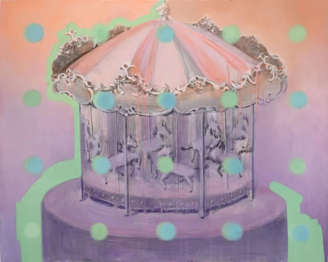 木马在绚丽的盒子里永无休止地旋转跳动,不同的人在木马上擦肩而过,我们各自有着不同的人生故事,但骑上木马的一刻,在这个乌托邦的乐园里相聚。木马是我们心底深处对世界本能的幻想和好奇心,上面的霓虹灯永不停歇地闪亮着。