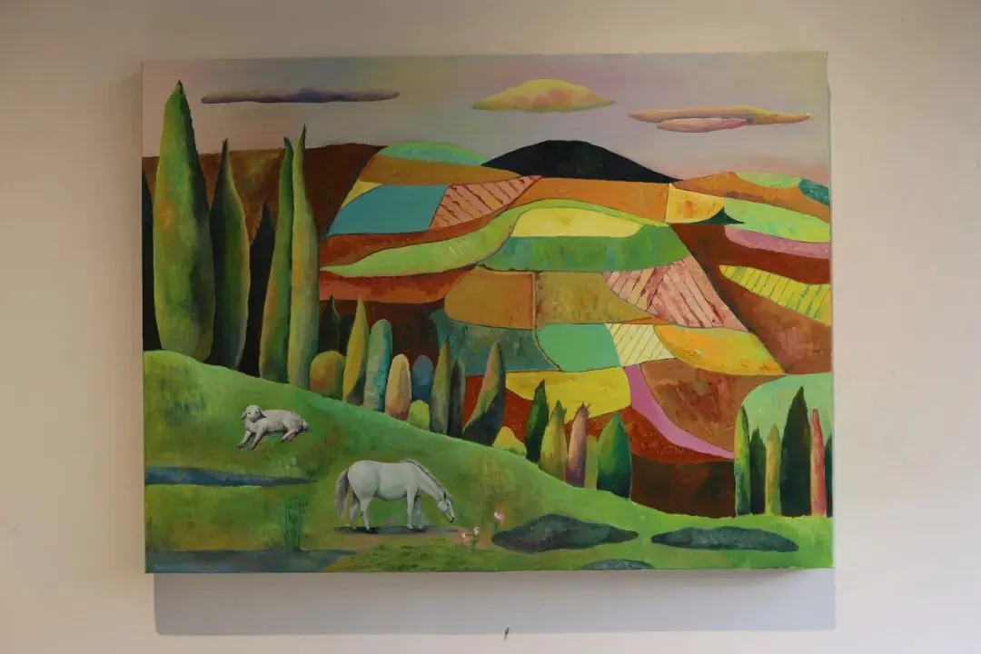 阳光下,一排小树,层层叠叠铺展至草地后。梯田如大地的琴弦,在光影间奏出宁静的旋律。马儿低头咀嚼时光,羊儿卧成云朵的模样,树木静立成诗。远离喧嚣,只有生灵与土地的低语,万物在自然的怀抱中,找到了最自在的姿势。