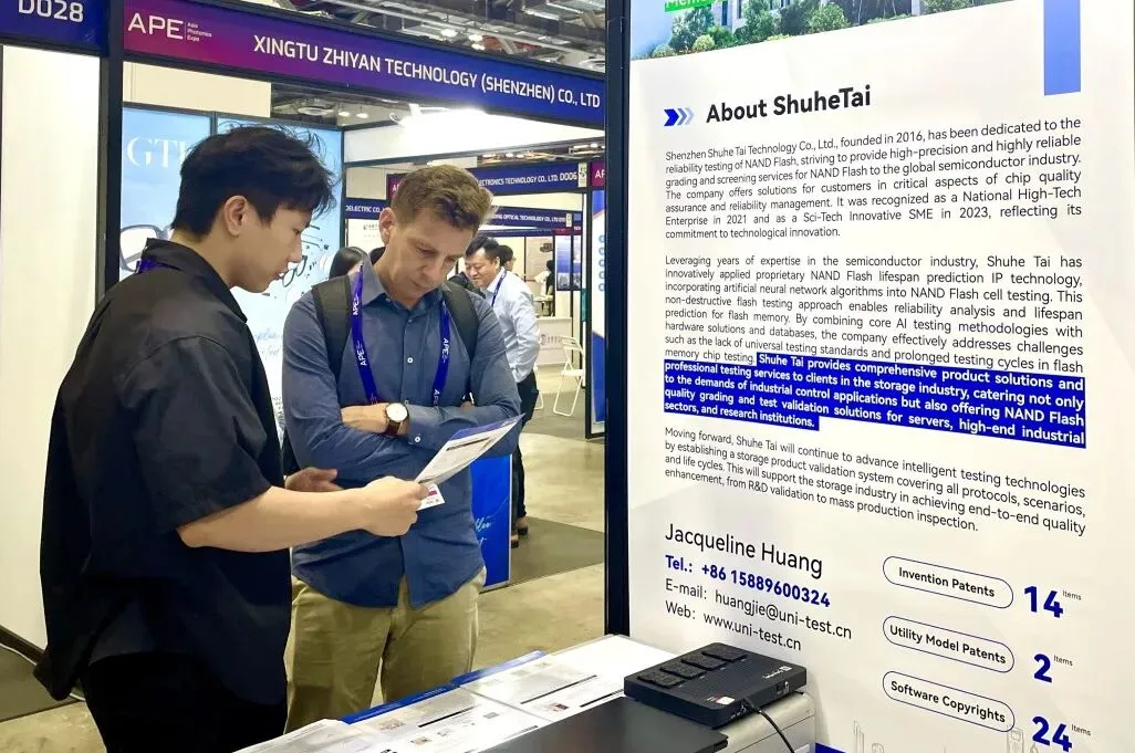 本次展会,数合泰重点展示了NAND Flash智能测试系统、eMMC智能测试系统和SSD智能测试系统,依托成熟的研发实力和业内口碑,为存储领域用户提供高效、精准、智能的产品解决方案和专业的测试服务。