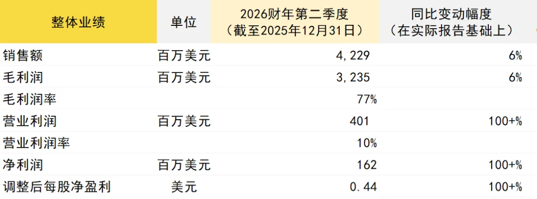 截至2025年12月31日,雅诗兰黛集团2026财年第二季度财务业如下: