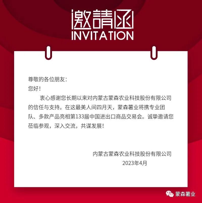 蒙森薯业诚邀您参加