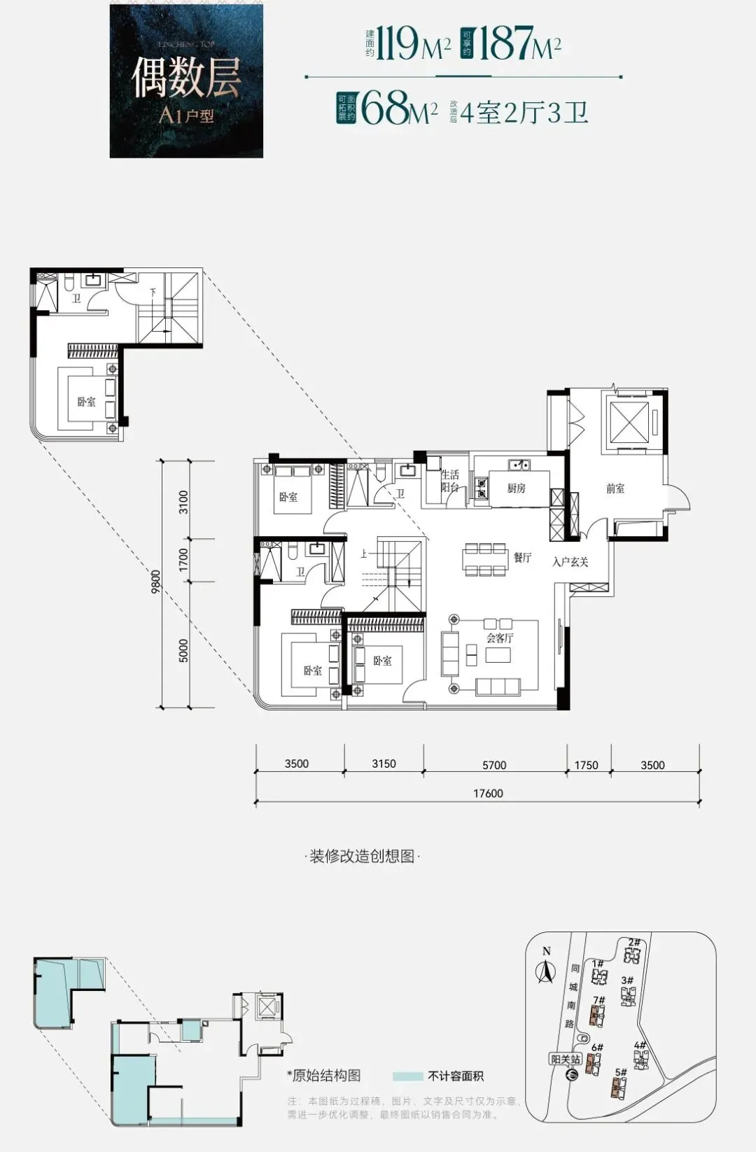 其中115/119平方米和137/140平方米户型系5、6、7号T4楼栋户型,140/140平方米和166/166平方米户型,则是3、4号T3楼栋户型。