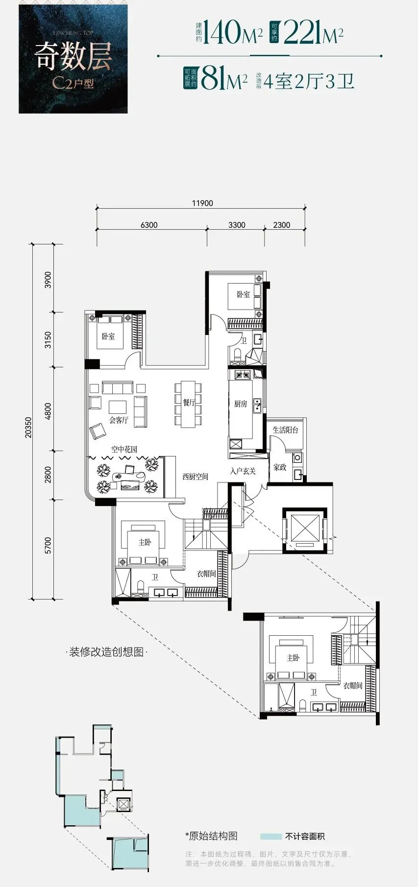 总体看下来,我个人感觉这个项目的户型,更多关注的是功能性,无论建面是115平方米还是166平方米,功能区都填得很满;