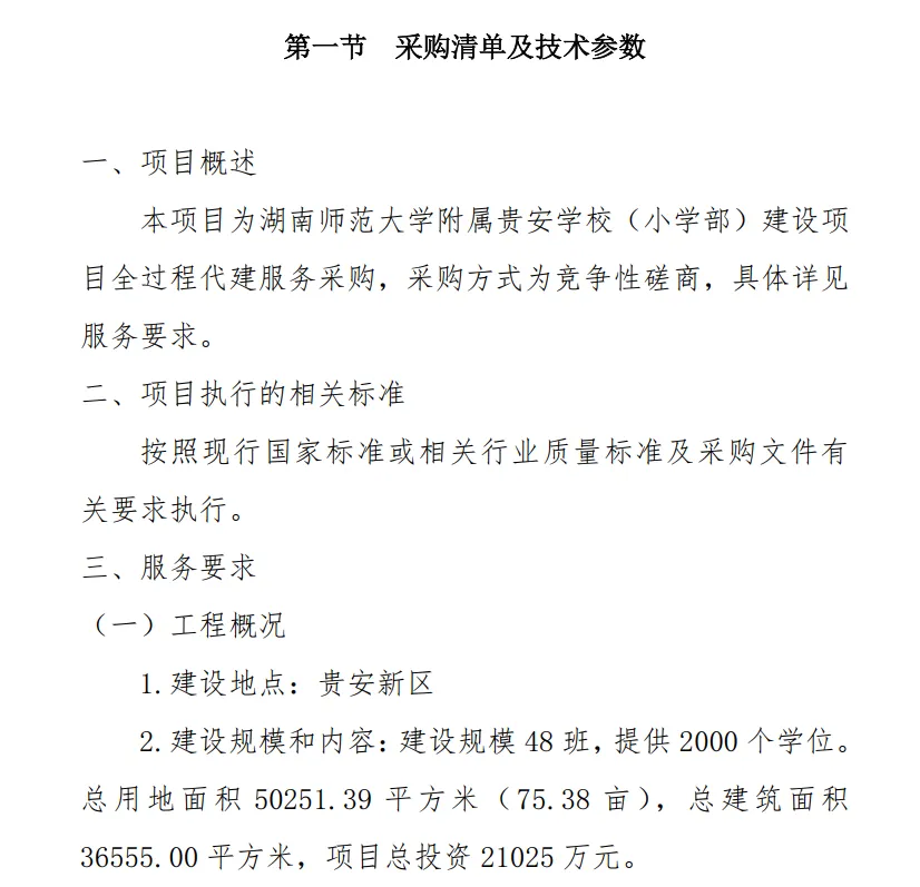 2026年2月3日,据贵阳市公共资源交易中心公告,湖南师范大学附属贵安学校(小学部)建设项目启动全过程代建服务采购工作。