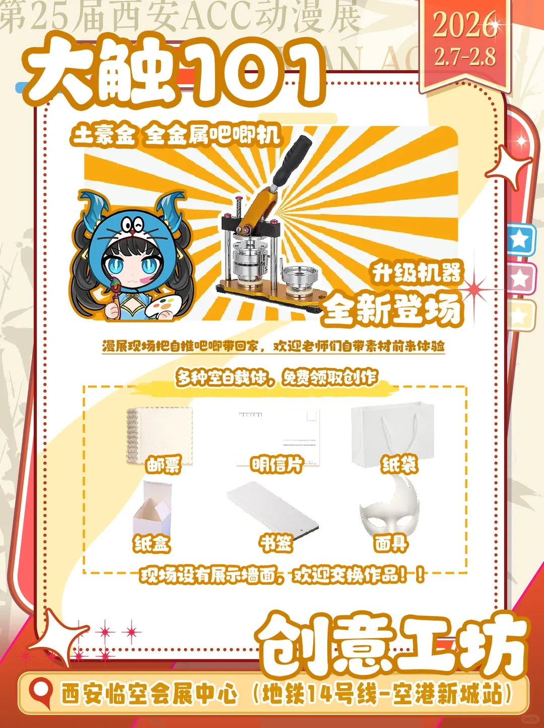 手绘明信片、热缩片吧唧制作,做完直接带走~