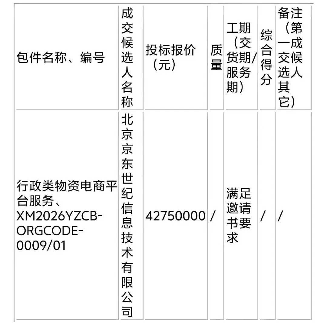 浙江省交通投资集团有限公司招标采购管理中心2026年行政类物资电商平台服务(浙江商业集团-高速商贸)(第2次采购)直接采购项目成交候选人公示
