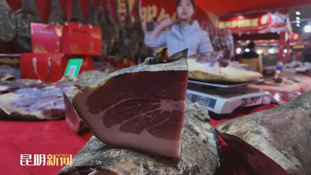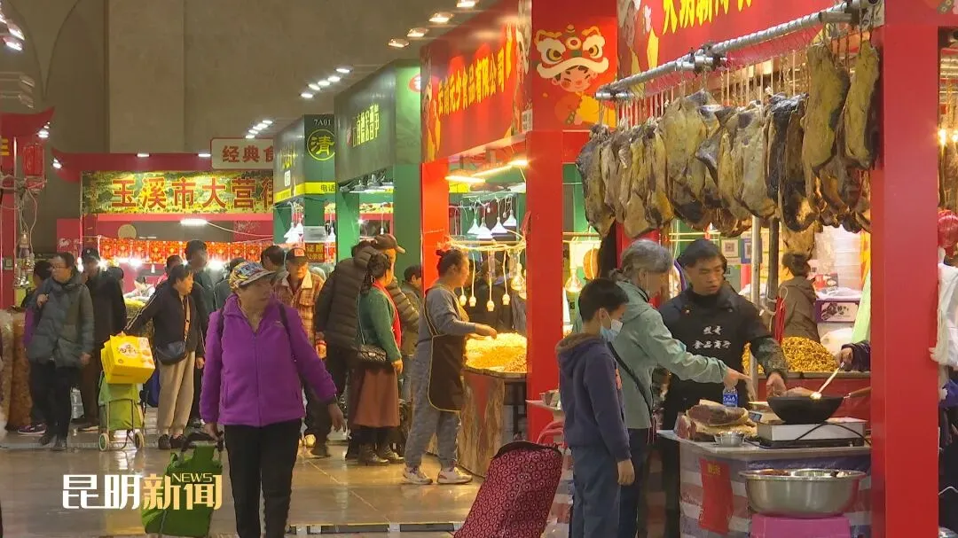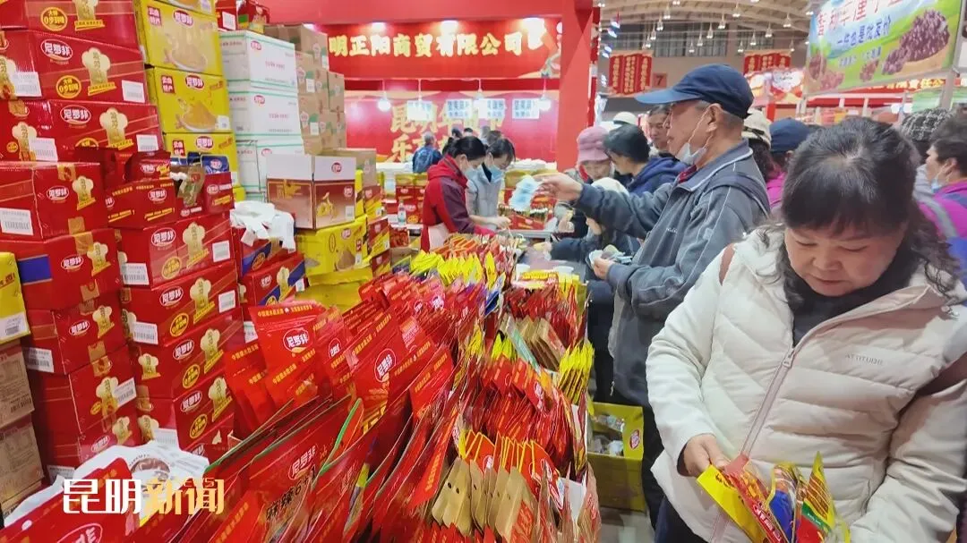 为期14天的展会,集结了上万种精选年货,全面覆盖“吃、穿、用、住、行”五大消费场景。走进滇池国际会展中心7号馆,红彤彤的春联、福字和寓意吉祥的年俗饰品琳琅满目,瞬间拉满新春氛围。馆内展区里,大理腊肉的醇厚、寻甸牛干巴的劲道、山西老陈醋的香浓与精品坚果的香脆交织在一起,来自全国的名优特产与云南本土风味同台展销,为市民提供“一站式”采购选择,满足不同家庭的节日消费需求。
