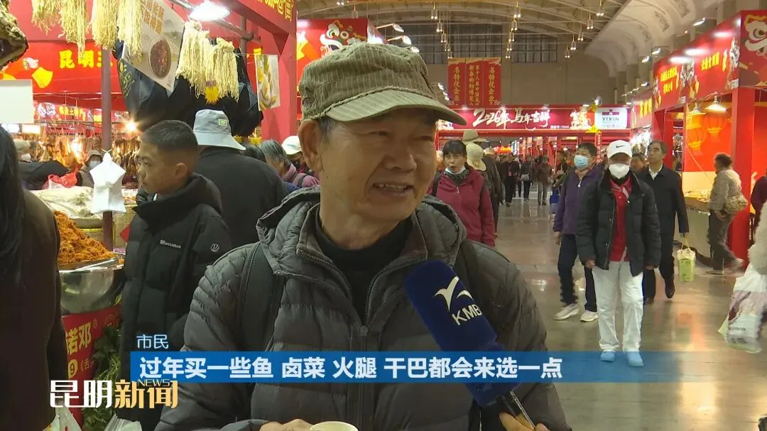 “过年买一些鱼、卤菜、火腿、干巴,都会来选一点。还有糖果,今年这儿满好的,我看挺热闹。”
