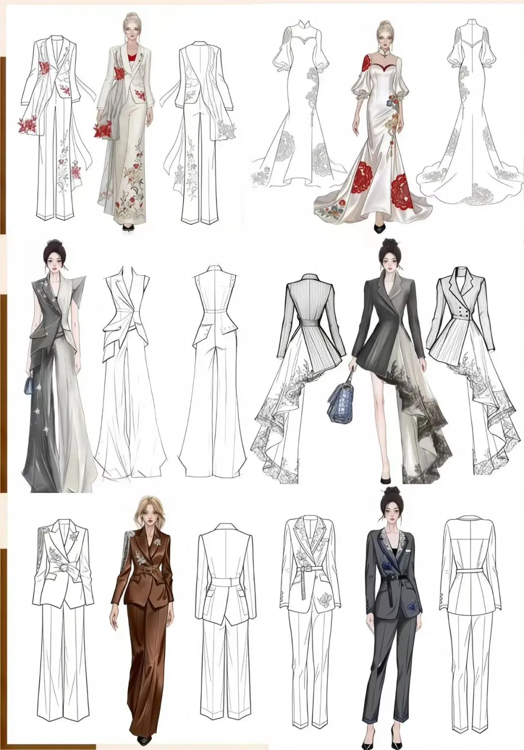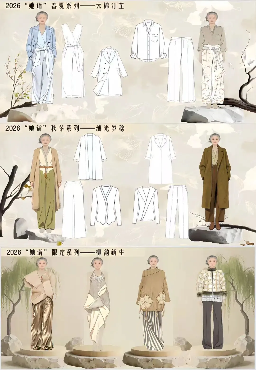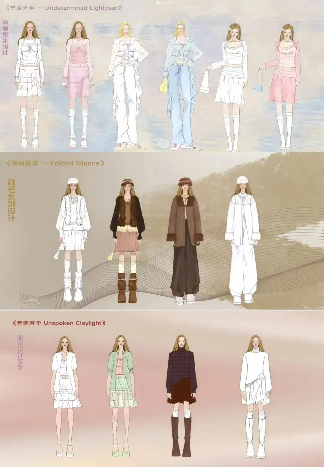 《服装品牌设计与企划》课程紧密融合设计学与市场经济学,旨在培养学生系统的品牌战略思维与前瞻性的市场洞察力。课程以模拟创建服装品牌为核心,引导学生立足时尚产业前沿,并结合 2026 年时尚趋势预测完成了两季服装产品企划,实现了从理论到实践的专业能力提升。在创作过程中,学生们不仅成功将山西非遗元素进行了创造性转化,推出了“非遗限定”时装系列,更积极探索 AI 虚拟技术在设计呈现中的应用,大幅提升了作品的表现维度与专业完成度。这充分展现了学生融合文化、商业与科技的综合素养,为未来应对时尚与创意产业的数字化变革奠定了坚实基础。