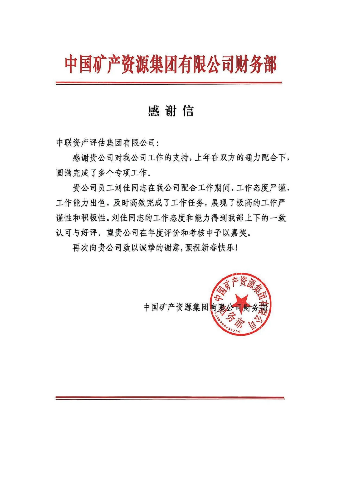 岁序更迭,华章日新。在辞旧迎新的美好时刻,中联资产评估集团连续收到多封来自证券交易所、行业协会、企业客户的感谢信和表扬信。一封封信件,是专业认可,是价值信赖,更是前行路上的不竭动力。