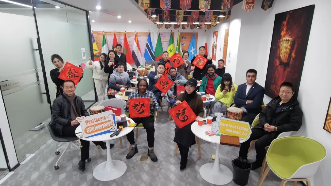 活动现场洋溢着浓厚的文化交融氛围。来自坦桑尼亚和肯尼亚的友人深情演绎中国经典民谣《成都》,用真挚的歌声传递对中华文化的理解与热爱;中国朋友则挥毫泼墨,以遒劲的笔锋书写 “中非友谊长青”“合作共赢” 等书法作品,将东方笔墨艺术赠予远道而来的伙伴。一歌一字间,文化在碰撞中共鸣,友谊在互动中升温。