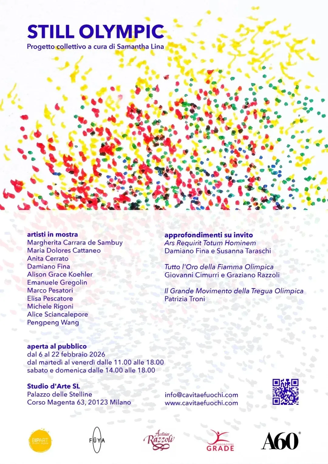 2026年2月6日至22日,在米兰-科尔蒂纳奥运会同期,策展人萨曼莎·丽娜(Samantha Lina)于米兰斯特利内宫(Palazzo delle Stelline)呈现群展项目《奥林匹克的余静》。本次展览汇集多位艺术家与研究者围绕“奥林匹克”主题的作品与思考,从跨学科与多维视角出发,重新审视奥林匹克运动的原初精神,以及艺术创作这一行为本身所蕴含的意义与价值。展览标题中,“Olympic”并非仅指现代体育赛事,而是回溯至奥林匹斯山——众神栖居、凡人不可抵达的象征性空间;“Still”则指向艺术创作中的关键瞬间:艺术家在作品中将某种不可言说的奥秘凝止于形,却又使其保持振动,与世界建立持续而隐秘的联系。正是在这种“凝止与回响”之间,《奥林匹克的余静》展开了一场关于身体、精神、创造力与崇高经验的当代对话。Dal 6 al 22 febbraio, in concomitanza con l’evento sportivo di Milano e Cortina, Samantha Lina, artista e direttrice creativa di Cavità e Fuochi, ospita presso il proprio studio al Palazzo delle Stelline Still Olympic. Il progetto collettivo raccoglie opere e testimonianze di artisti e relatori sul tema delle Olimpiadi e riflette trasversalmente sul senso originario dei giochi olimpici e dell’atto creativo. Nel titolo, “Olympic” riporta l’attenzione al monte Olimpo, abitato dagli dei e inaccessibile agli uomini, mentre “Still” descrive l’impresa dell’artista che nell’opera ferma, e tuttavia lascia vibrare, il mistero che la connette al mondo.