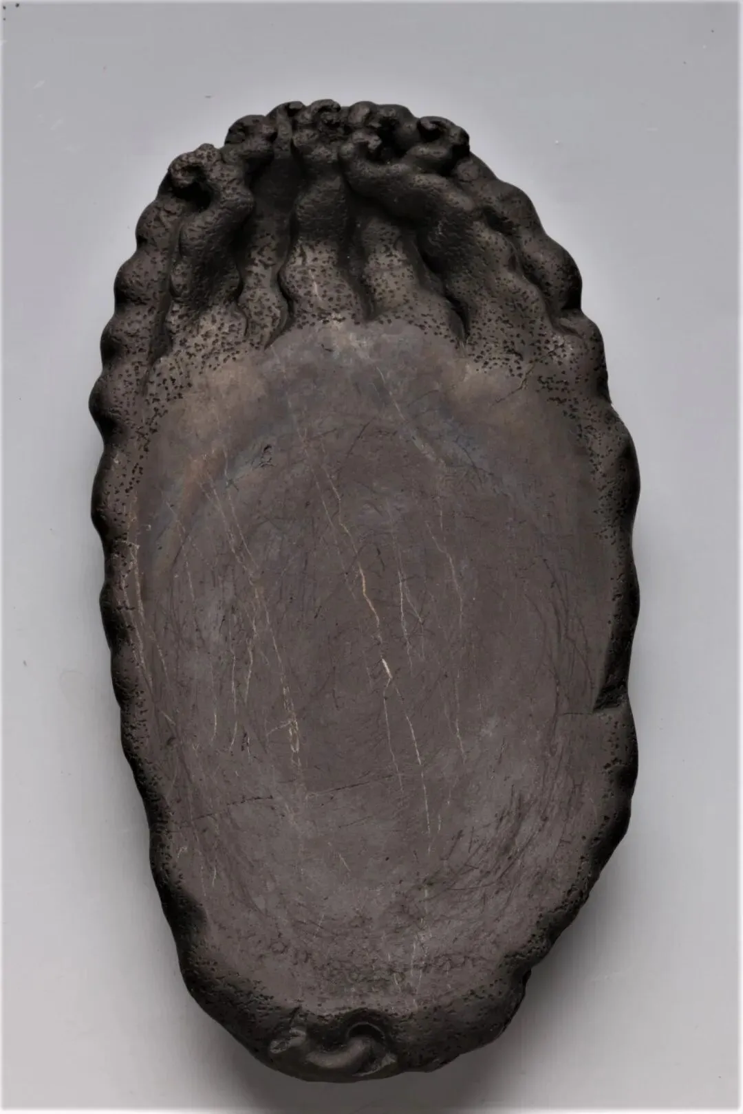 明 端石刻花池椭圆形砚