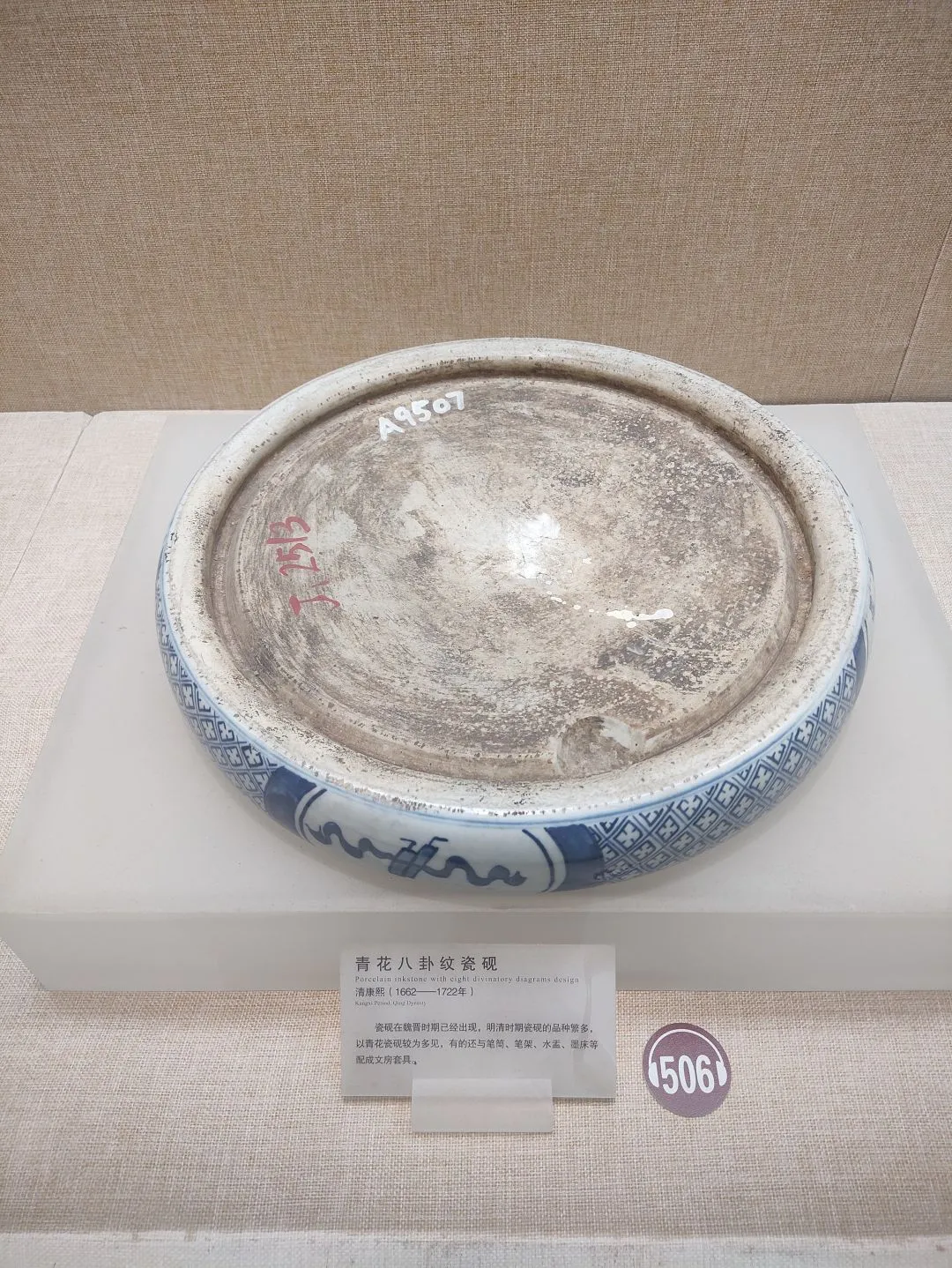 清康熙 青花八卦纹瓷砚