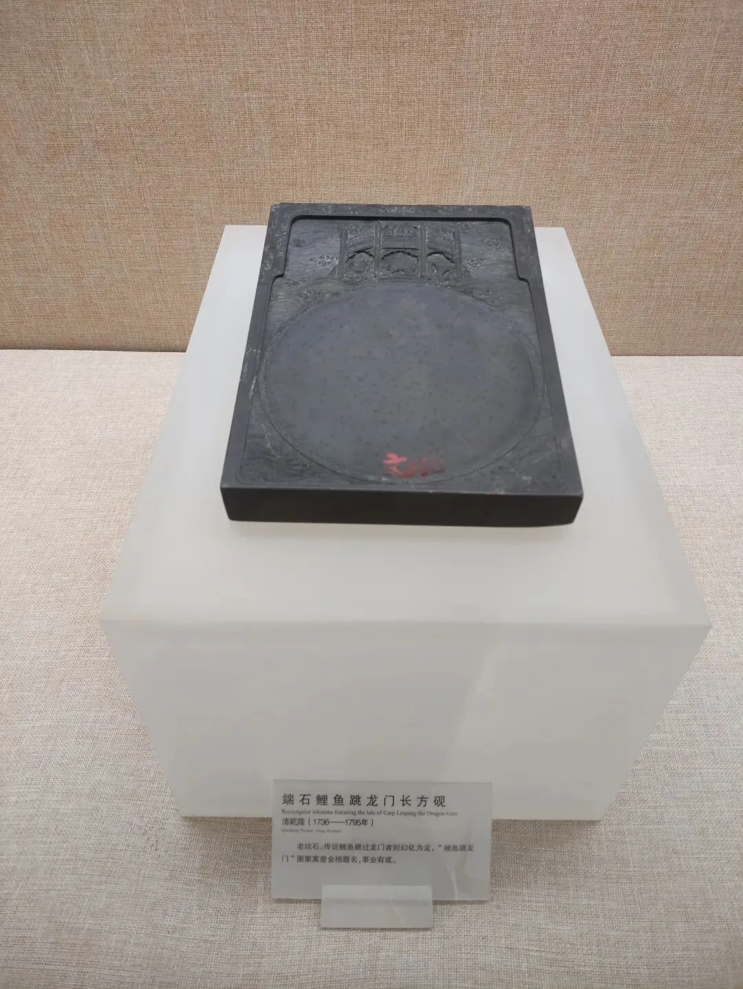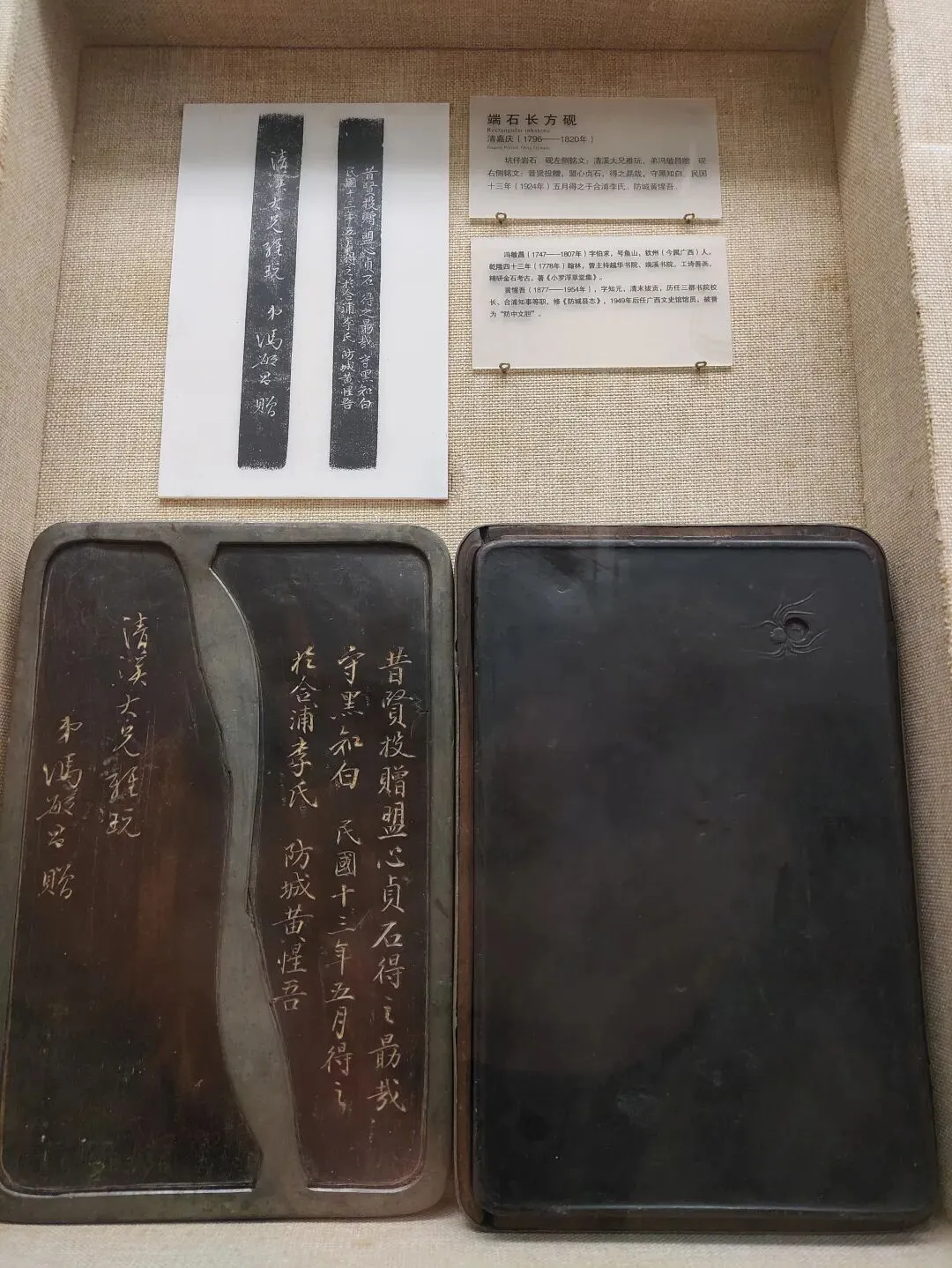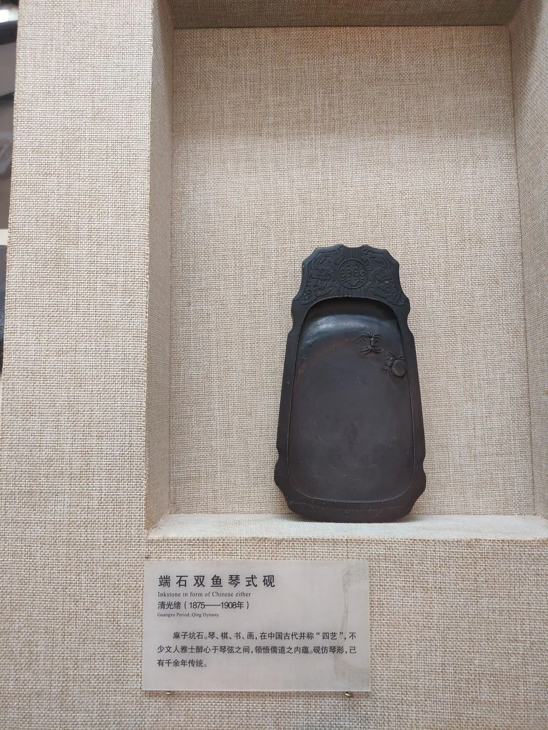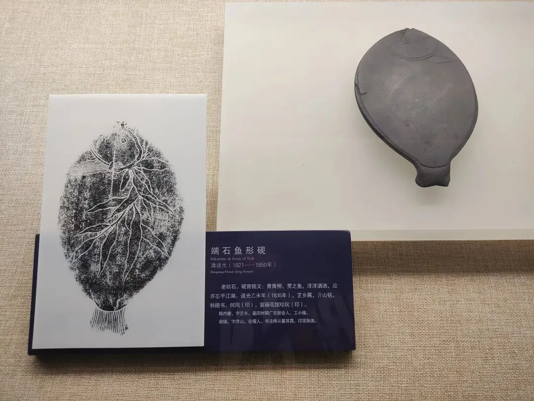 清道光 端石鱼形砚 砚背拓印
