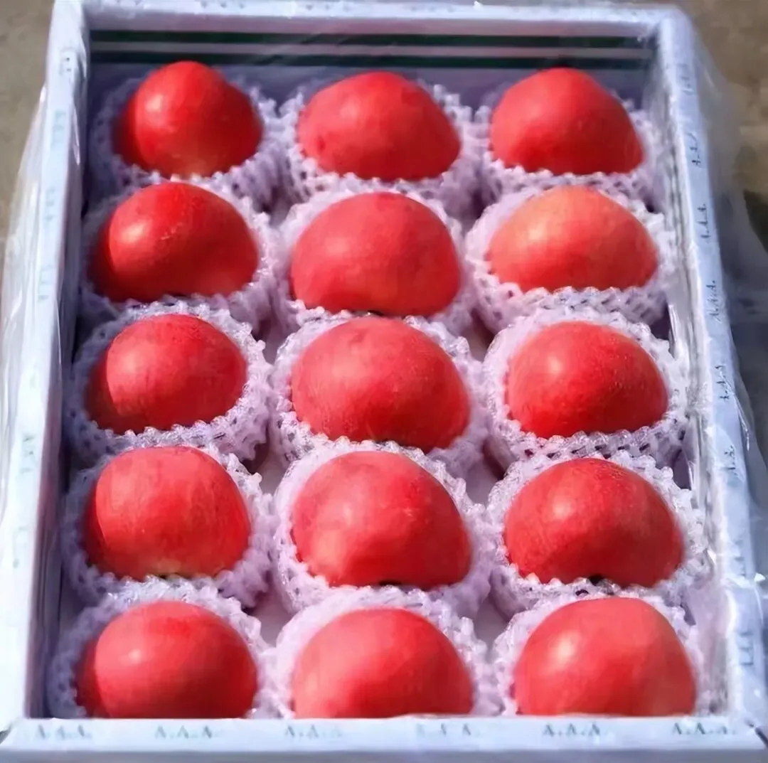 咱先直观感受下这果子的“颜值与实力”:果型端端正正,高桩饱满,不像有的苹果歪歪扭扭;果面摸起来光洁细腻,没有粗糙的斑点,着色是那种自然的浓红,看着就有食欲;咬一口更是绝了,香脆甜爽,汁水顺着喉咙往下淌,而且果实密度大,嚼着有质感,还特别耐贮藏,放一段时间风味更足,完全不用怕买多了浪费。