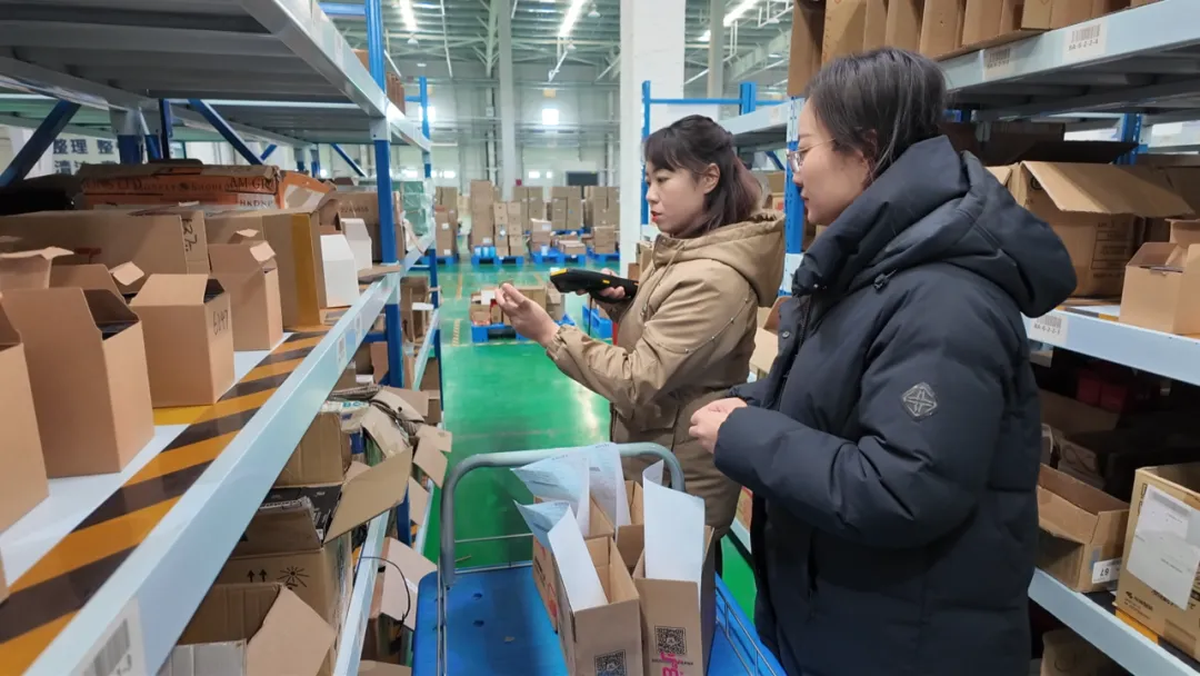 “B&R鑫选”仓库工作人员打包货品。张海茜摄